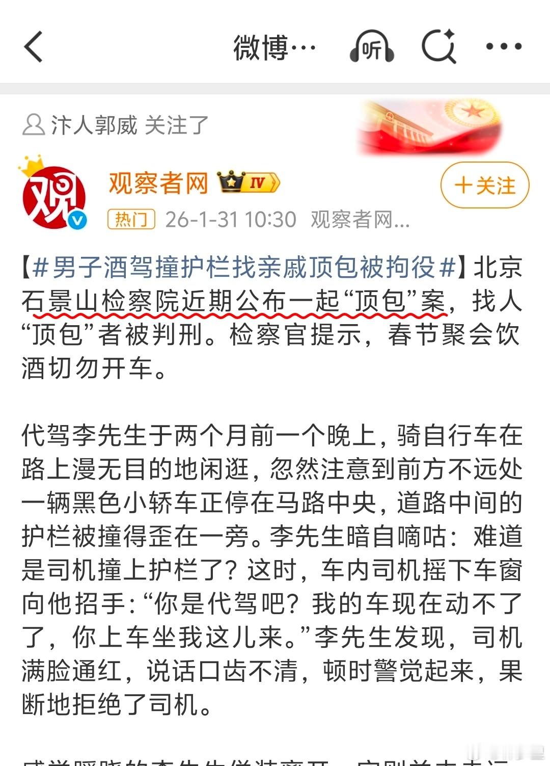 男子酒驾撞护栏找亲戚顶包被拘役顶替驾驶员身份,对交警撒谎,司机不主动坦白,默认顶替身份,这些行为其实都是顶包。
