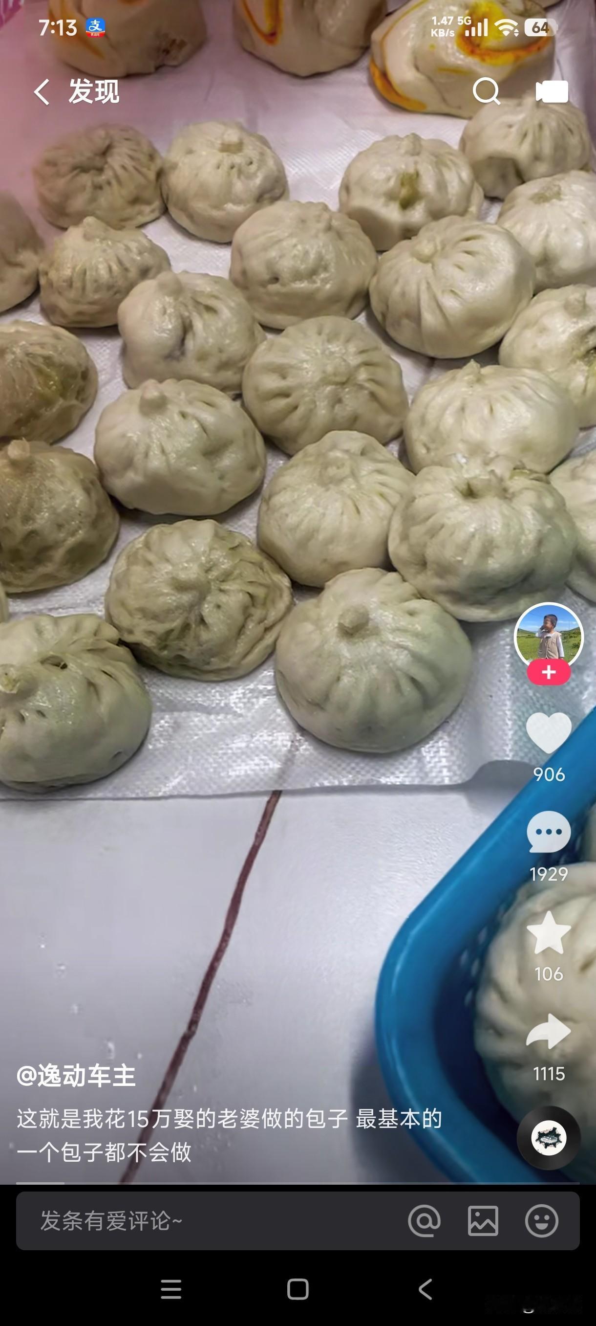 看到这一幕差点没把我笑死。 网友发出他花15万彩礼娶的老婆,为什么蒸的包子是这样的?这究竟是学艺不精压根就不会做饭,还是这包子做的方法不对,到底是那个环节出问题了? 当他把视频发出来后,评论区的网友也各有说法,花15万娶的老婆为什么要会做包子,难道娶媳妇就是让她给你做包子的吗?你才花15万口气就这么大,毕竟她不是给你还做熟了不是吗?发到网上这是几个意思,这是在丢媳妇的脸,还是说自己娶错人了? 做任何事都是需要天赋的,有些人活了一辈子连厨房都没有进过,而有些人一天到晚围着锅台转,有些人看起来长的花枝招展的,可她就是不会做饭,而有些人长的普通一般,但她就是心灵手巧,萝卜青菜各有所爱,每个人都各有所长不是吗?