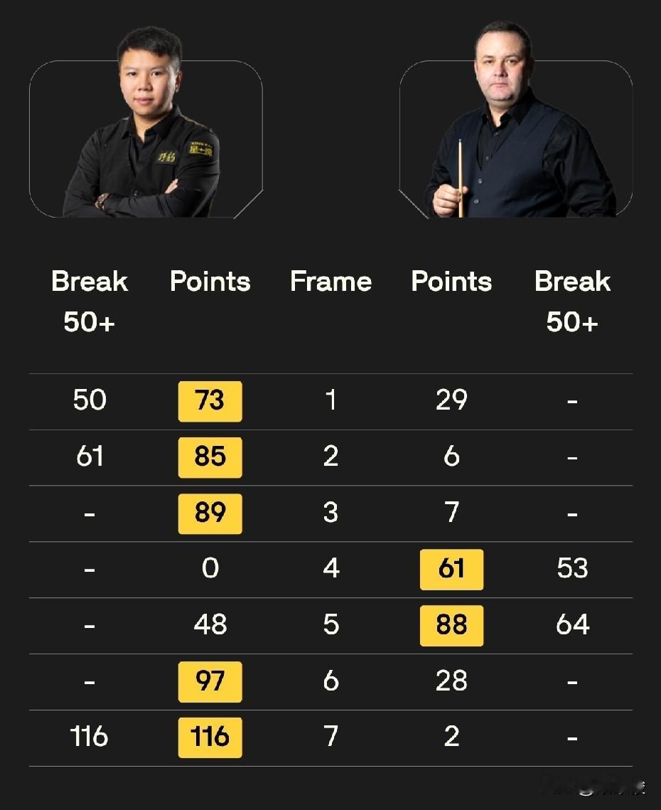 肖国栋5-2战胜凯伦·威尔逊,周跃龙5-2战胜马奎尔,双双晋级世界大奖赛16强。塞尔比5-0零封亚伦·希尔,斯莱瑟5-2五连鞭宾汉姆。 先说周跃龙的比赛,这场比赛,周跃龙状态可以,准度虽然不是最佳,但多次长台上手。马奎尔状态不佳,估计时差没倒过来,失误太多,白球走位经常不到位,因此一杆致胜能力大打折扣,结果本应势均力敌的一场比赛,有点一边倒,最终周跃龙5-2获胜晋级。周跃龙第二轮的对手是尼尔·罗伯逊和杰克·琼斯之间的胜者。 肖国栋与凯伦·威尔逊的比赛也有点一边倒态势,主要原因是威尔逊的状态比预期的差太多,失误较多。前4局,肖国栋3-1领先。其中第4局,肖国栋75-56逆转。第6局威尔逊71-59逆转扳回一局。第7局肖国栋88-11拿下,最终5-2锁定胜局。肖国栋第二轮的对手是火箭奥沙利文和奥康纳之间的胜者。 今天下午时段另外两场比赛结果是,塞尔比5-0零封亚伦·希尔,早早收工。二师兄宾汉姆比较悲催,2-0领先,被斯莱瑟五连鞭,2-5败下阵来。 今天19点,还有4场中国球员的比赛,它们是:张安达vs马克·威廉姆斯,吴宜泽vs麦克吉尔,丁俊晖vs霍金斯,常冰玉vs利索夫斯基。 中国球员,加油!