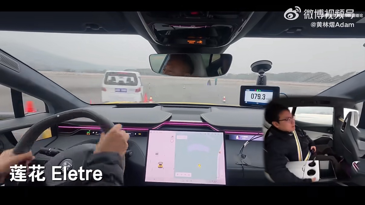 莲花ELETRE的表现就很惊艳。落地即稳,一次回弹迅速贴地,极大抑制俯仰摇摆。紧接着的急弯中,转向响应干净利落,高度展示赛车级的调校功底