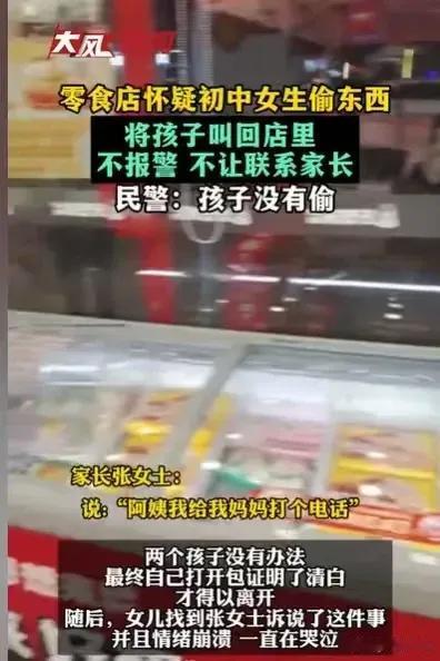 陕西咸阳礼泉县。 两个女孩去零食店,走出来却被店员叫回,原来店员怀疑两人偷零食,无奈站在那里等着店员查监控,还得接受旁人异样的眼光,包括同学,女孩说要联系妈妈,店员拒绝,两人打开包自证清白。这件事对女孩伤害极大,说要跳楼。 店员有什么权利扣留女孩?即便有怀疑,在大庭广众之下让孩子承受同学们的注视,女孩才14岁,最注重面子,让她们如何面对同学,精神伤害不是钱能解决的。 店员限制他人自由已经违法,而且女孩未满18岁,须有其监护人承担女孩的所有责任,店员拒绝女孩通知母亲也是违法行为。 必须道歉,贴大门口一个月,给孩子一个公道。