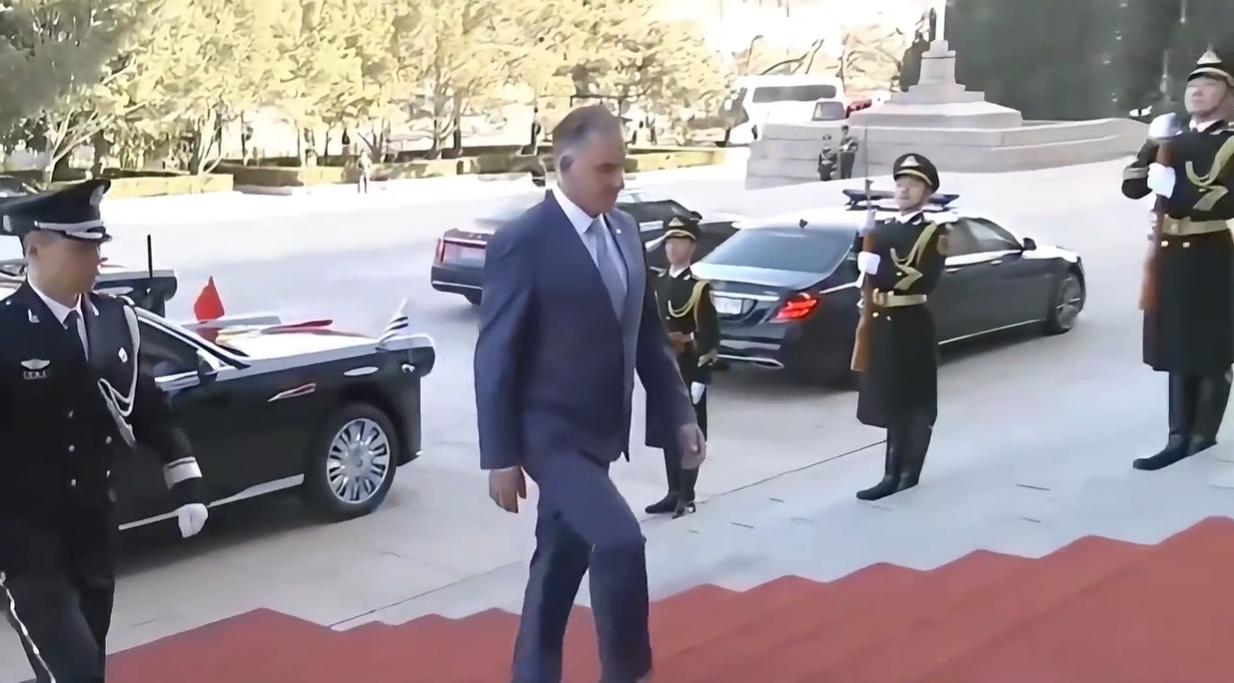 2月3日乌拉圭总统乘车抵达人民大会堂,下车后穿蓝色高定西服上台阶,一身正装打扮昂首挺胸往上走,尽显总统强大气场! 他可是一个有个性的总统,访华不走寻常路,打破出访规矩,在北京玩两天后才开始出访工作,这不换一身崭新的西服套装,穿着白衬衫系着蓝色领带,一身全新造型彰显绅士又不失男人魅力! 还有总统先生上台阶进入人民大会堂的气势,丝毫不输给列队欢迎他的仪仗队,而且上台阶时不哈腰不低头,给人全程端着的感觉,不过这种感觉让人看着好有力量感!