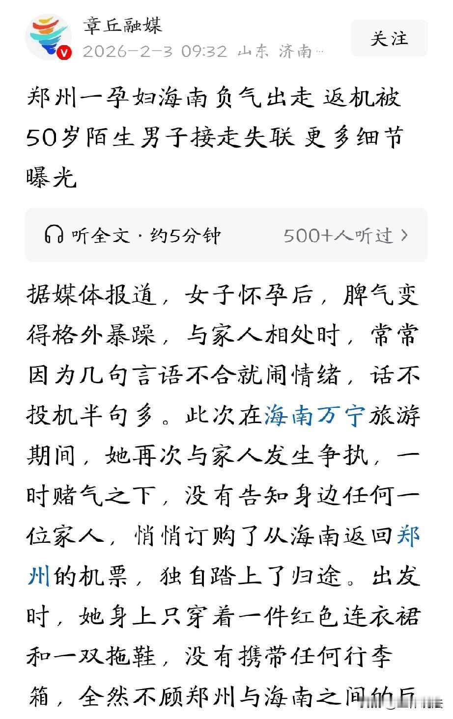 河南郑州,怀孕三个月的女子和家人在海南旅游,中途和家人吵了一架,竟穿着连衣裙和拖