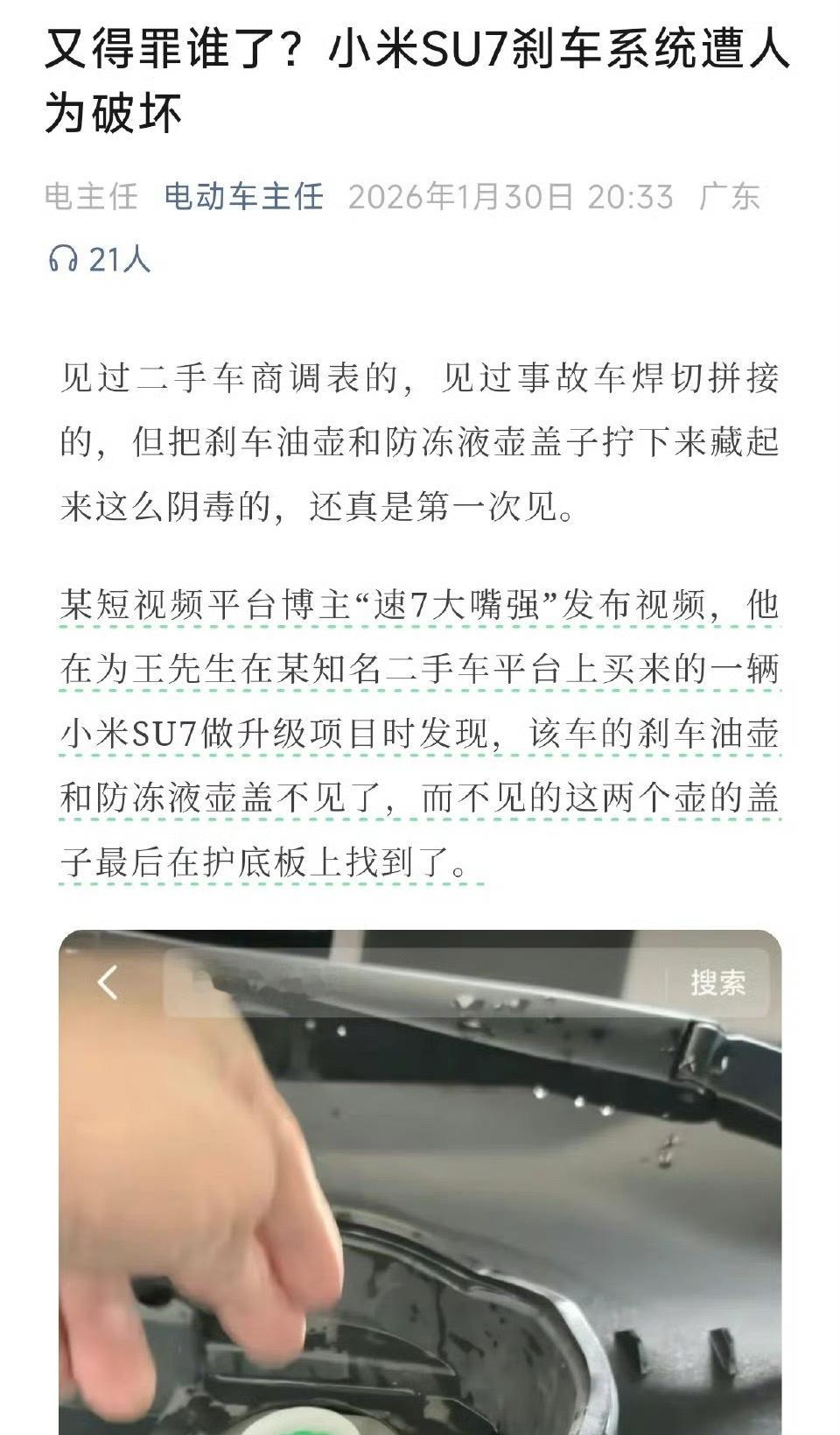 su7刹车系统被人为破坏?这是违法了吧?太毒了吧?做个人吧!