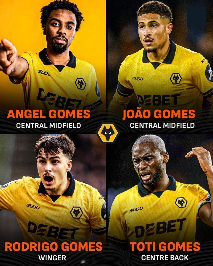 【一门四杰】狼队,成为英超史上首支拥有四名相同姓氏球员的球队:安赫尔-戈麦斯(英格兰,攻击中场)、若昂-戈麦斯(巴西,后腰)、罗德里戈-戈麦斯(葡萄牙,边锋)、托蒂-戈麦斯(葡萄牙,后卫)。