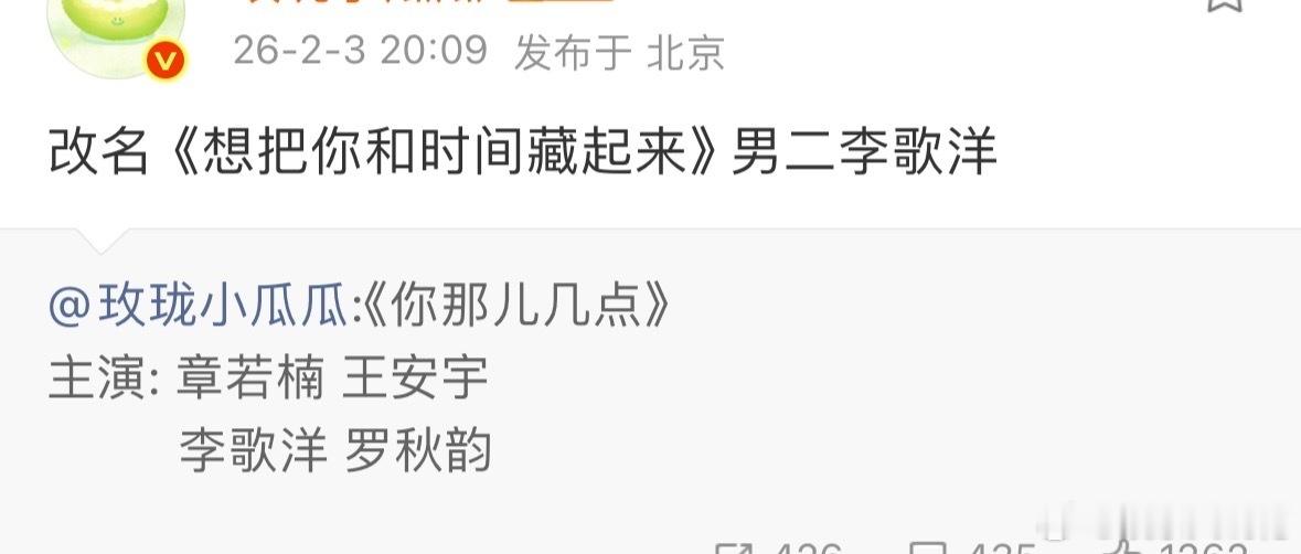 网传章若楠王安宇合作想把你和时间藏起来章若楠王安宇你那儿几点改名《 你那儿几点》女主变成章若楠,男主是王安宇,影视化后还保留小说本名 想把你和时间藏起来