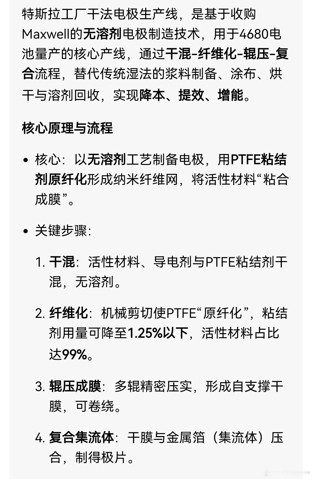 马斯克在X平台官宣特斯拉实现正负极全干法电极规模化量。