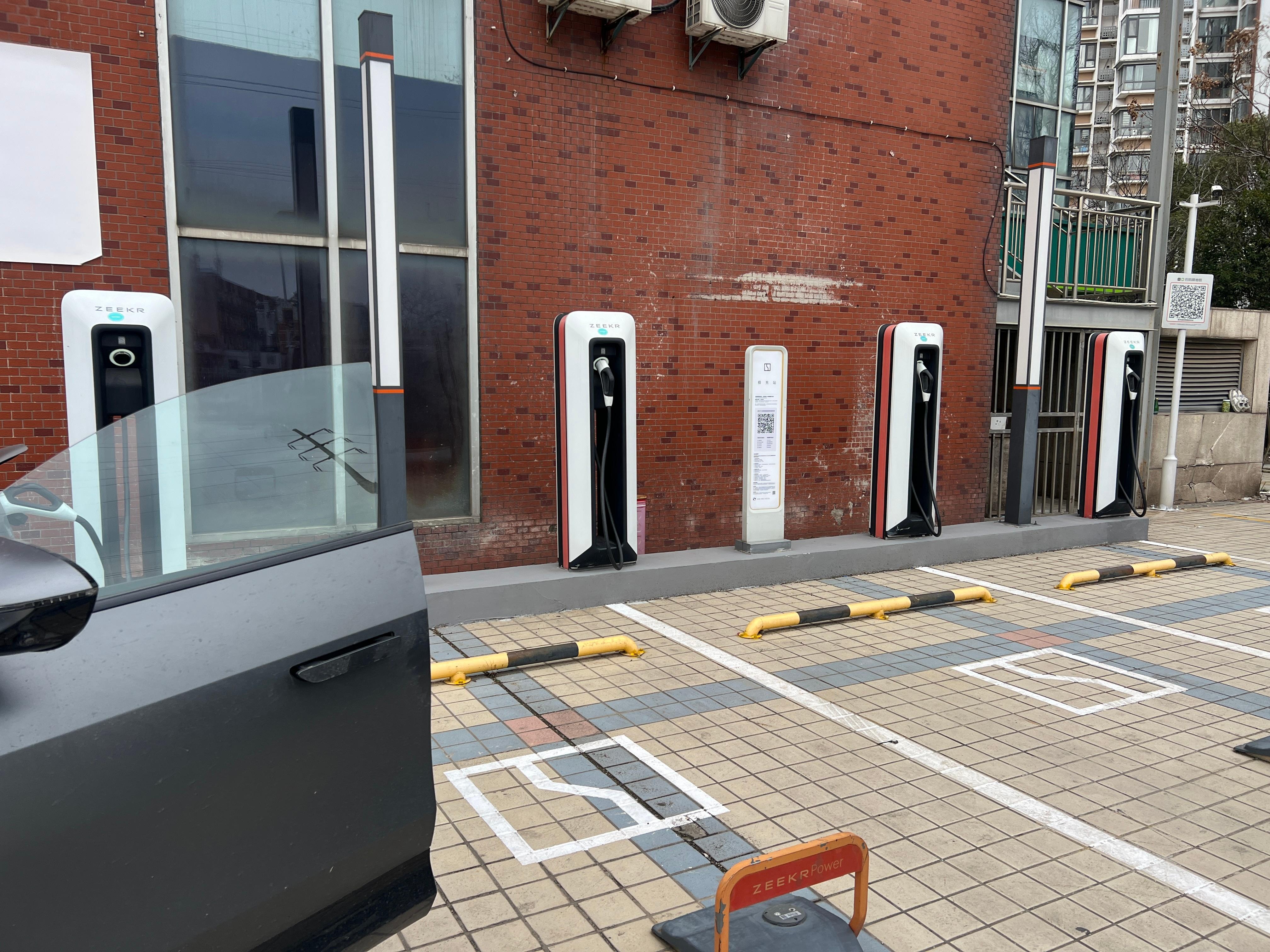 蹭了把极氪的充电桩,速度挺快。特别是每个车位都有地锁,APP 里显示的和实际空余的一样。不像有些充电站,看着有好几个空位,跑过去一看都被占了,装一个地锁接入 APP 里,应该花不了多少钱吧?