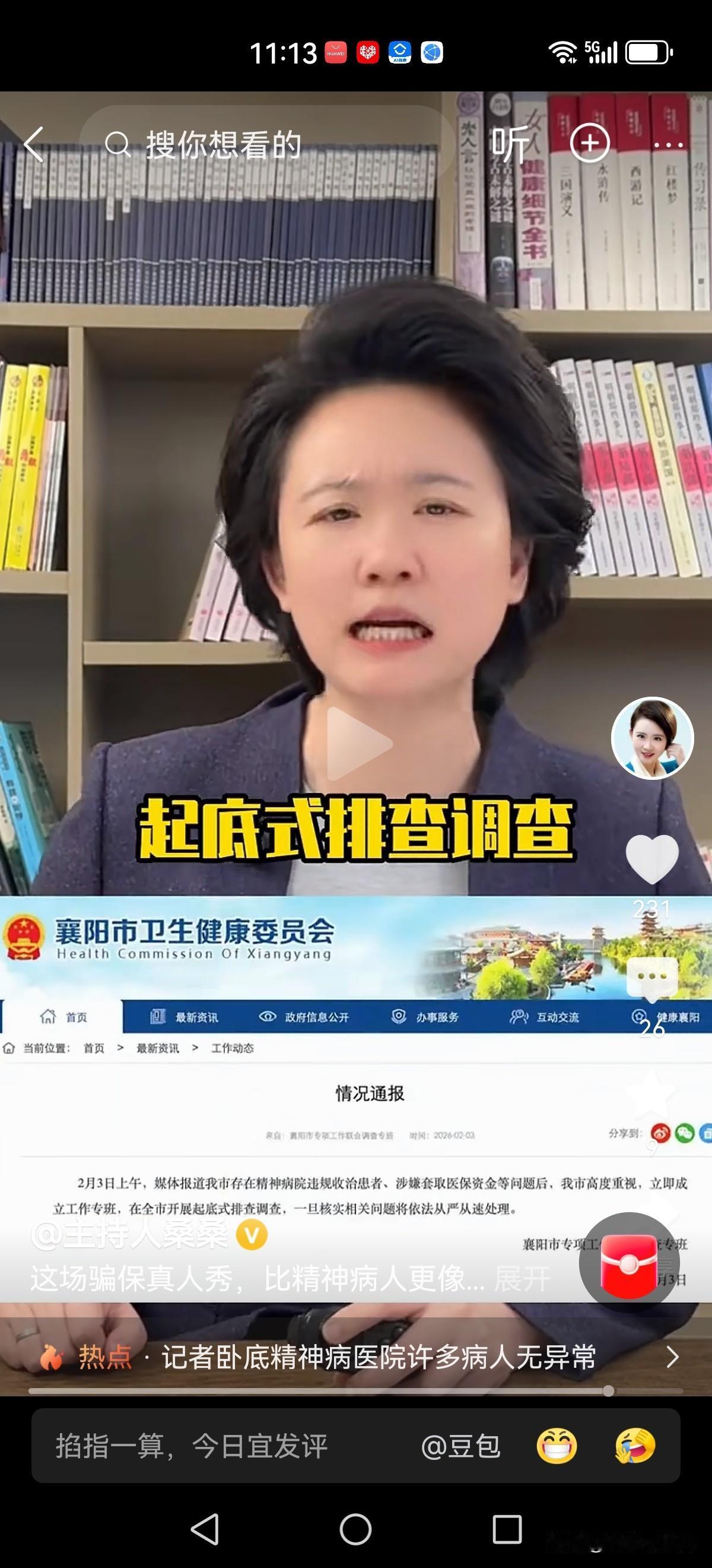丧心病狂!一个小小的地级市襄阳,竟然涌现出来20多家精神病医院!小病大治司空见惯,甚至是没有病的正常人也被拉进去住院治疗!一切的一切,只为了成功骗保! 太不可思议!你能相信吗,这种荒谬的烂事竟然发生在信息化的当代社会!20多家精神病院是如何审批修建的,无良操作是怎么骗过监管的??? 太多的疑问,我们期待湖北襄阳能彻查水落石出,将真正的“病人”揪出来,使劲治疗! 看鉴襄阳