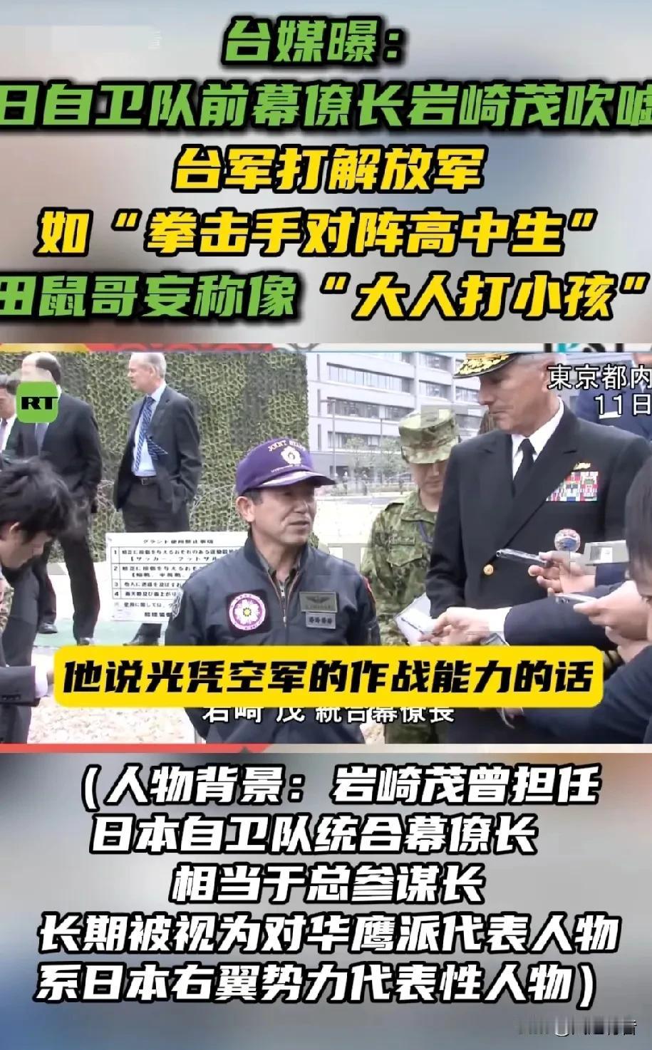 据日本共同社报道,日本朝野政党党首在2月1日的NHK节目中,就首相高市早苗国会答辩引发中日关系紧张展开辩论。中道改革联合的联合党首齐藤铁夫强调了维持日中对话的重要性。共产党委员长田村智子要求高市撤回答辩言论。自民党代理政调会长田村宪久以“可能传递错误信息”为由予以拒绝。 田村表示,日本在对华外交上“要推进战略互惠关系,基于我国利益作出应对十分重要”。日本维新会党首吉村洋文对中国军费增长表示警惕,呼吁有必要增加防卫费。 日本国民民主党党首玉木雄一郎考虑到对华依赖度较高的稀土,提出“如何构建不依赖中国的供应链”,强调资源与能源自给体系的重要性。 此外,日本《产经新闻》前记者矢板明夫在一期节目中转述日本自卫队前航空幕僚长(矢板明夫脸书上自曝为日本自卫队前统合幕僚长岩崎茂)的话称,虽然中国空军在飞机数量上占优,但台军飞行员均为优秀的职业军人,双方对阵会如同“拳击运动员跟高中生打架”。台湾绿媒主持人“田鼠哥”李正皓笑称为“大人打小孩”。 岩崎茂此前2023年在受访时也曾公开表示,从士兵个体素质来看,中国人民解放军士兵与美国、日本、台湾地区士兵相比差距很大。 以前我们看到这样的言论还会紧张一下,不过今天看到这样的言论,直接一笑而过。