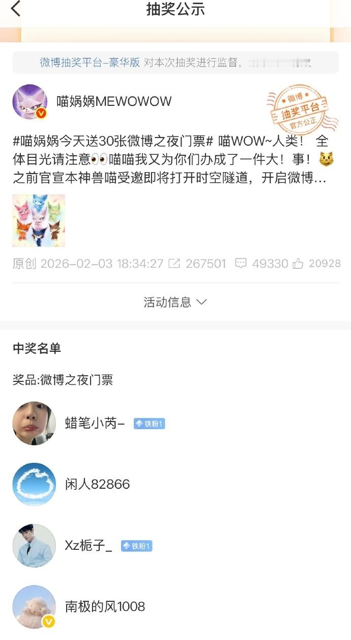 微博之夜送票抽奖5轮开奖完毕,25个中奖者,21个爬子姐,当你抛10万次硬币,正反面朝上的比例就是1比1,当试验次数足够多,随机事件发生的频率会趋于某个稳定的数值,这个数值就是该随机事件的概率,这条微博71.2万次转发,基本上是去微博之夜的半个内娱各家粉圈活人转发,这个分母足够大,所以抽中肖战粉丝这个随机事件的概率可以视作4/5,又因为每个人被抽中的概率是一样的,所以也就是说肖战粉丝在内娱活粉占比就接近40%-50%