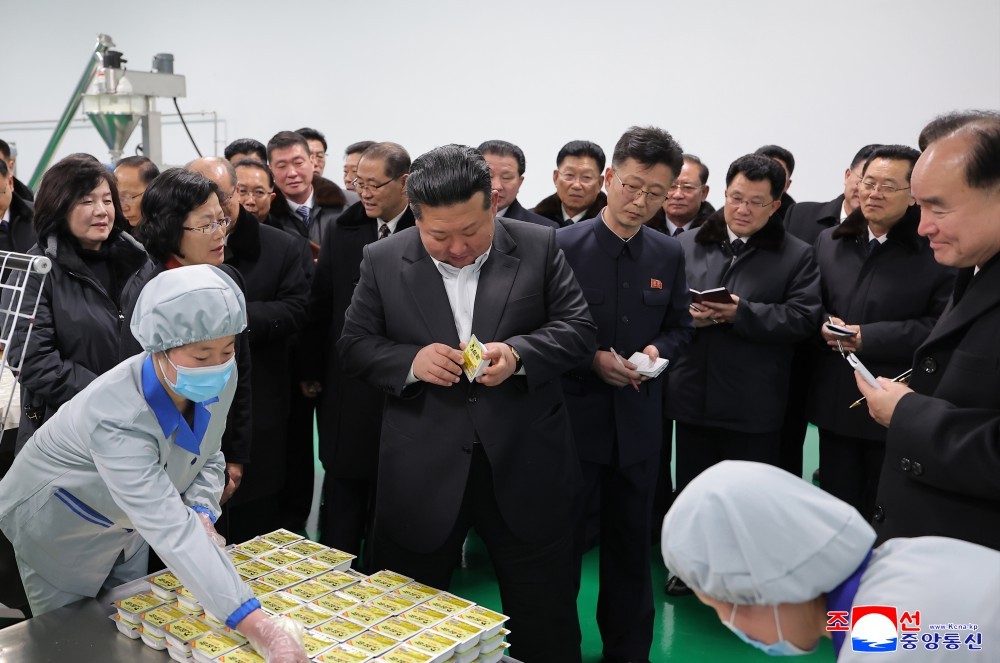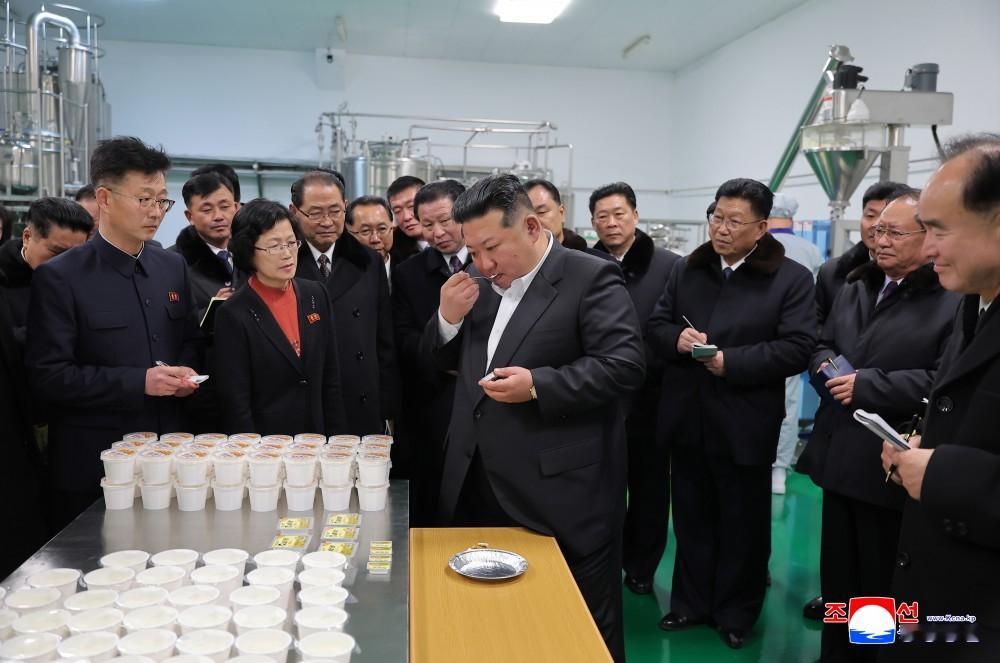 金正恩同志还品尝乳品说,味道绝不亚于中央产品,觉得更香、更好吃。一家名不见经传的农场大量生产奶油、奶酪、奶粉、酸奶等10多种乳品,真是了不起,一想到我国儿童和人民能吃到如此优质的乳品,深感自豪。