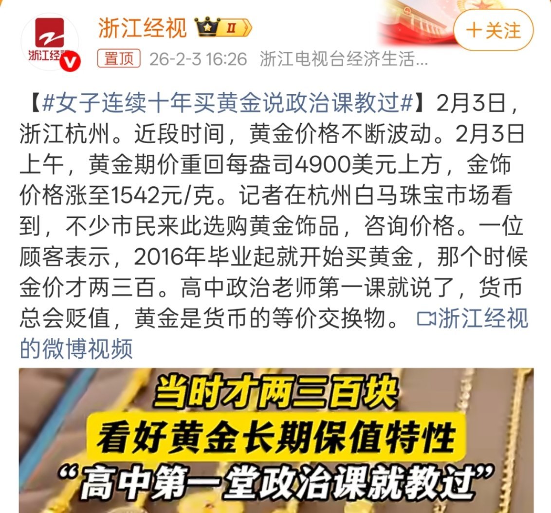 女子连续十年买黄金说政治课教过这是真学到了,当时我上高中的时候金价确实也就两三百,不过那时候我就觉得太贵了,没想到现在直接翻五倍。