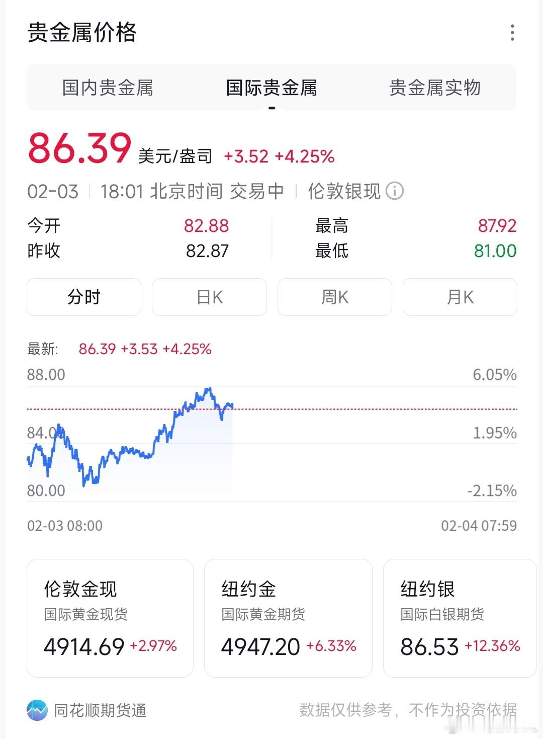 今天白银已经反弹了,但只是空头回补的技术性反弹,超跌修复,暂时也别追高!。短期就是震荡,80美元是伦敦银关键位,破了就歇菜,国内银价也会跟着磨。但中长期不用慌,光伏工业用银需求摆在这,供需缺口没消失,牛市根基还在。现在就是急跌后的磨底,别恐慌割肉,也别盲目抄底加杠杆……儿子劝父亲卖出45公斤白银躲过暴跌白银暴涨10%