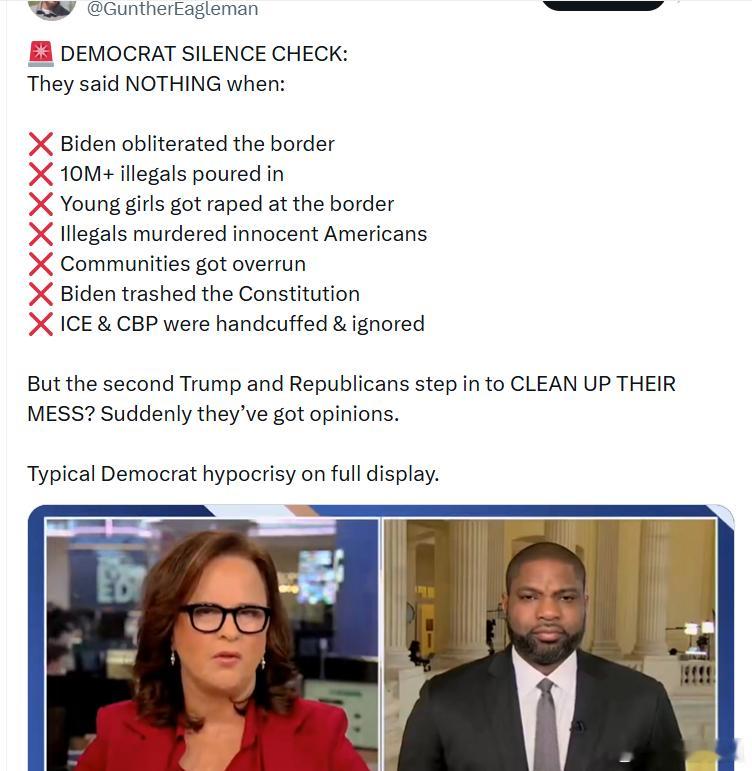 民左党沉默大检查:当以下情况发生时,他们一句话也没说:❌ 拜灯肆意破坏边境❌ 超过1000万非法移民涌入❌ 边境上年轻女孩遭到强奸❌ 非法移民杀害无辜美国人❌ 社区被淹没、失控❌ 拜灯践踏宪法❌ ICE 和 CBP 被束手束脚、遭忽视