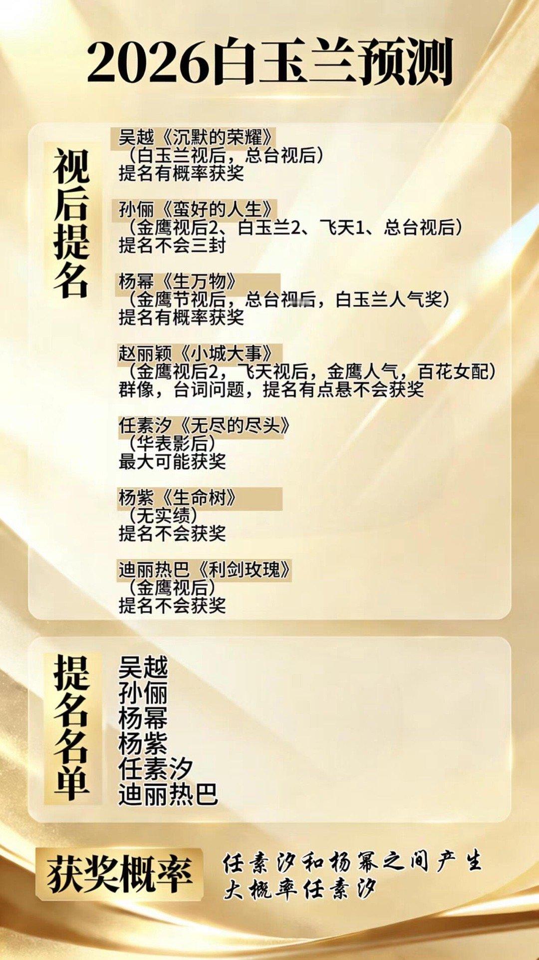 白玉兰预测,期待花落谁家