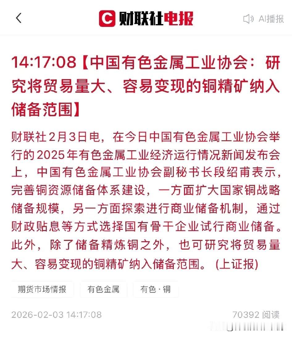 铜精矿收储的背后逻辑,是这些年来我一直持有铜业股的原因,当初因为江西铜业有H股,选择了云南铜业,当初选企业也有路径依赖的问题,对他俩情有独钟,如果当初选择紫金矿业,现在早已经是另外一番天地。 云南铜业和江西铜业,都属于国企骨干企业。 前些年黄金收储,对股市也没什么影响,真正影响股市的,是期货和现货价格的持续上涨。 所以,别当真,跟着趋势走,各种消息也只是消息而已。