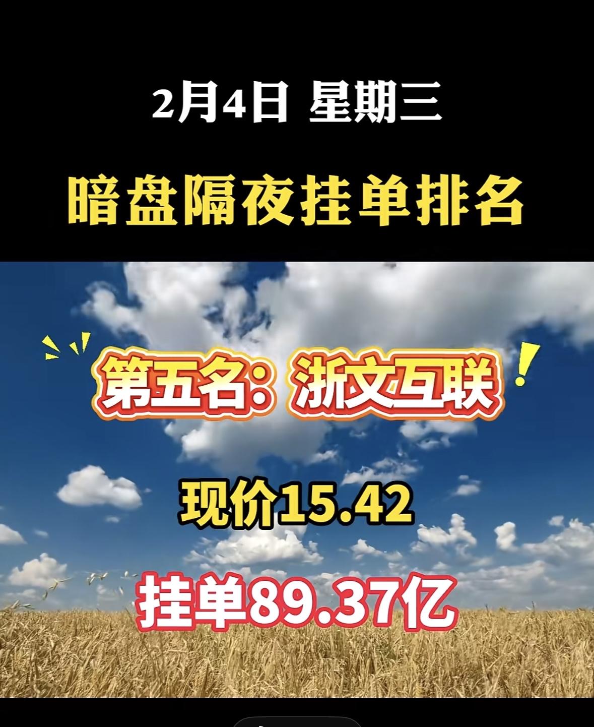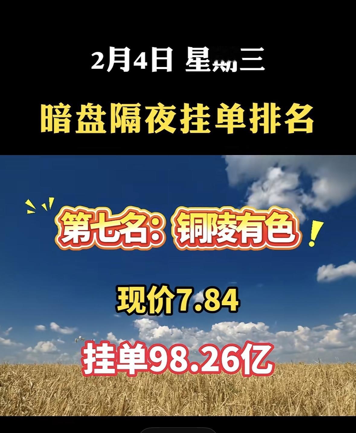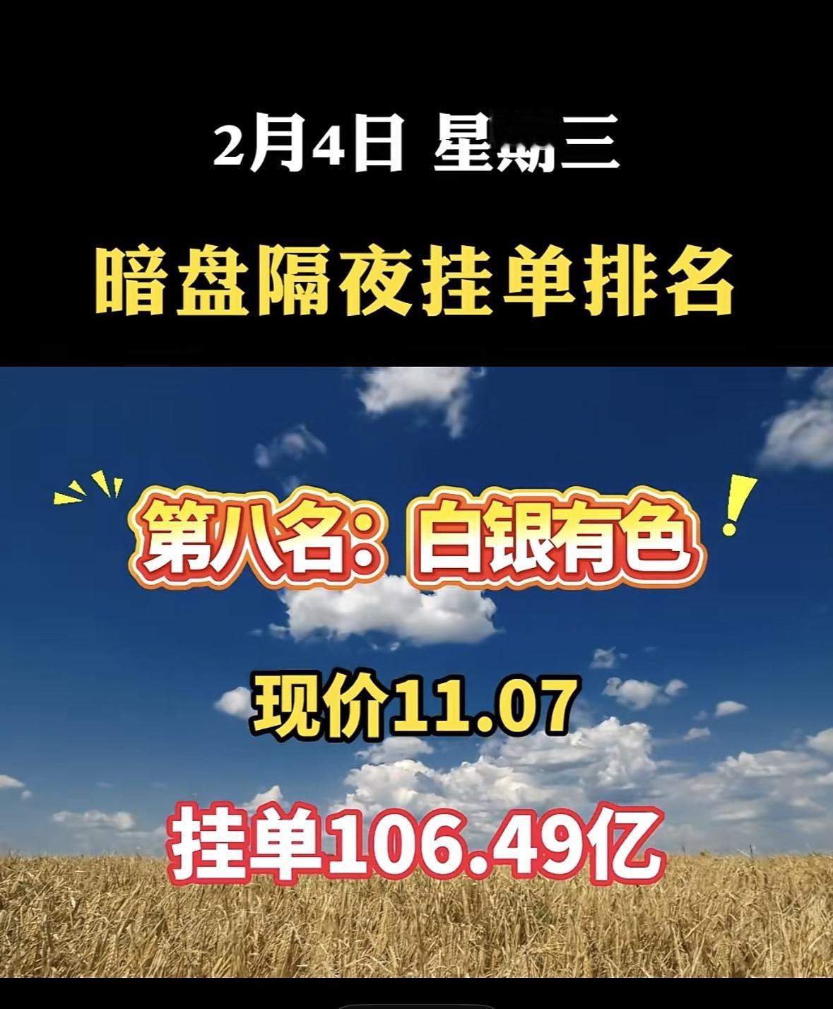 2月4日暗盘隔夜挂单排行,白银有色现价11.07,挂单106.49亿! "航天发展暗盘挂单夺冠,资金热度瞩目" "航天发展暗盘领跑,挂单近亿显强势"