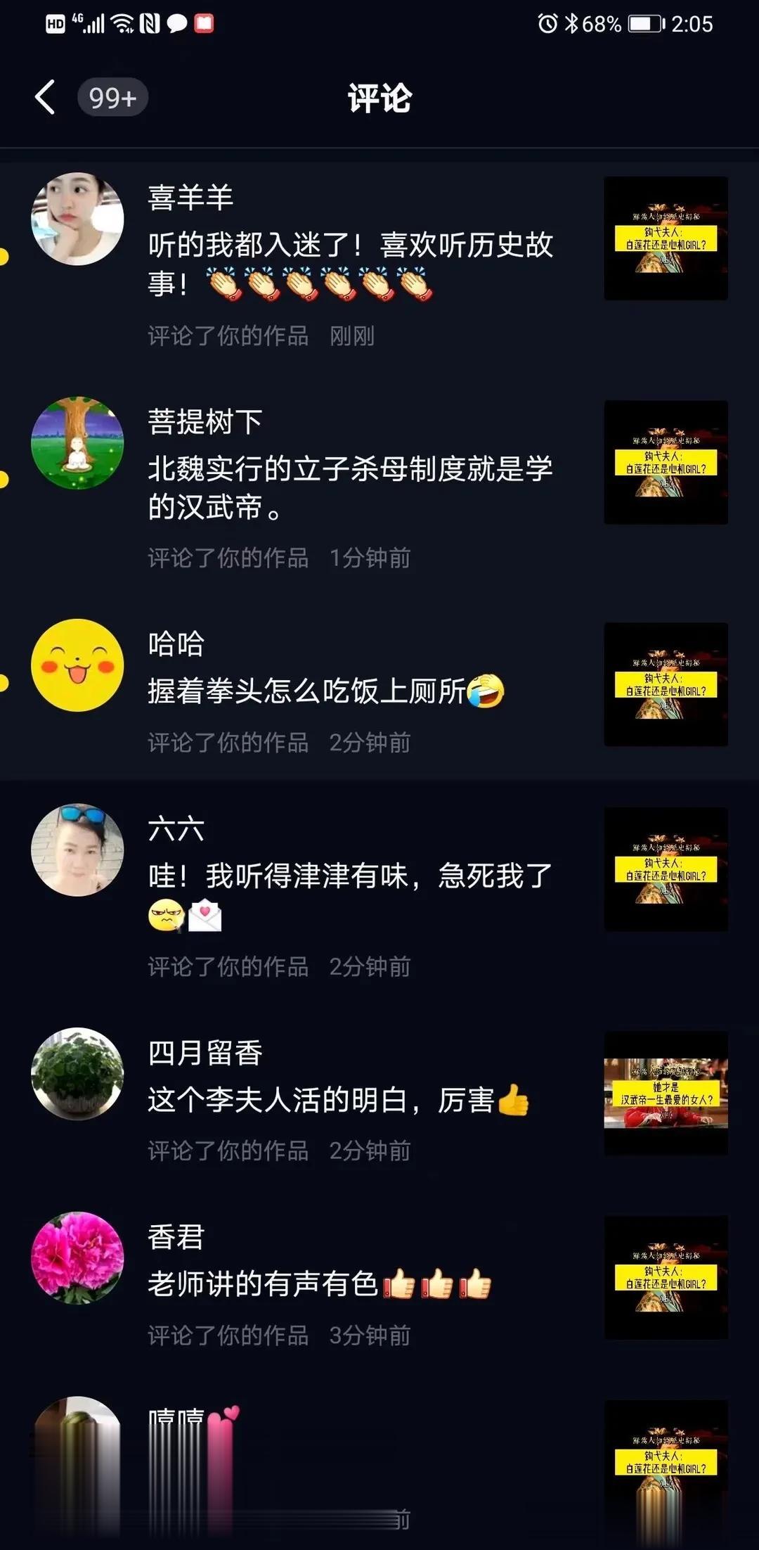 国庆长假,抖音停更八天,今天刚刚发了新的《钩弋夫人,是白莲花还是心机婊?》,半天播放量就奔着100万去了,点赞也有1万多,看看粉丝评论,感觉国庆歇了一周都挺对不起他们的[流泪]
