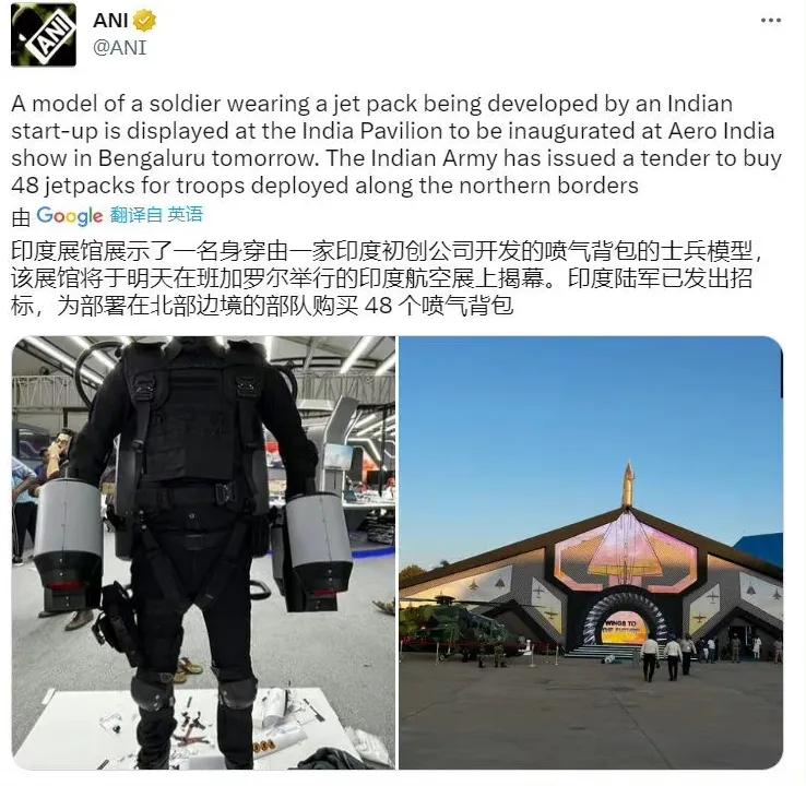 印度计划向中印边境派出高科技“秘密武器”。印度陆军计划紧急采购48套喷气背包,用于中印边境等敏感地区的侦查作战任务。印度陆军在今年1月发布了征求建议书 ,要求购买 48 个配备现代推进系统(包括涡轮发动机、电动和混合动力系统)的喷气背包。每个喷气背包价格不超过60万美元,计划用于中印边境地区的巡逻任务。据悉印度计划采购的“查德‧布朗宁”喷气背包,重约34公斤,由6台喷气发动机和一个燃料箱组成,能提供1000马力的动力,使用航空燃料,可以让75公斤的飞行员在空中大约飞行5分钟,最高速度可超过100公里/小时。一套背包的售价在45万美元。另外印度还计划给特种士兵配备“机器狗”在边境执行巡逻侦查任务 。