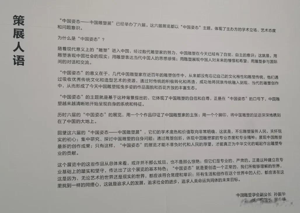 最后四天,年后各种打卡各种秀,还没去看的友友还来得及赶个晚集。 “中国姿态·第六届中国雕塑展”在湖北美术馆展期最后四天,这次展览共收获投稿近1000件(组)最终展出全国120余位作者的117件(组)作品,作品集中呈现了中国雕塑的五个类型:品物、观世、寄情、启智、化古,展示出了中国雕塑发展的新风貌。 本届展览总策展人之一、中国雕塑学会副会长孙振华谈到:“中国姿态·中国雕塑展”已经举办了六届。“中国姿态”的意义在于,几代中国雕塑家在近百年的雕塑创作中,从来都没有忘记自己的文化根性和雕塑传统,他们通过吸收优秀传统文化和造型艺术的资源,通过对传统的积极转化和再造,成功地将民族传统融入到现、当代的雕塑创作中,从而形成了今天中国雕塑摇曳多姿的作品面貌和百花齐放的丰富生态。 这个展览中的这些作品从总体来看,或许并不那么炫目,甚至没有那么惊艳;但它们是专业的、严肃的。正是这种建立在专业基础上的踏实和坚守,传达出了这个展览的基本特色:“中国姿态”就是要创造一个正常的,我们所能够理解的世界,这是因为,无论艺术的世界还是现实的世界,都应该符合常理和常识;所有生活和创作在这个世界中的人们,都应该在这里找到一样的同理心,这就是追求人的发展,追求社会的进步,追求人类命运共同体的未来目标。 看着繁华的都市,走过芦苇荡上的栈道,望着路上悠闲的行人,站在这些雕塑面前,我脑海里浮现的第一想法就是:“国泰民安!” 最后的最后:“愿山河无恙,盼春暖花开,生生不息!” 补充资料: 展览名称:中国姿态·第六届中国雕塑展 展览时间:2022年12月31日-2023年3月5日 展览地点:湖北美术馆1、2、4、5、6、7号展厅 湖北美术馆开放时间:(周二至周日) 9:00-17:00,16:30 观众停止入馆