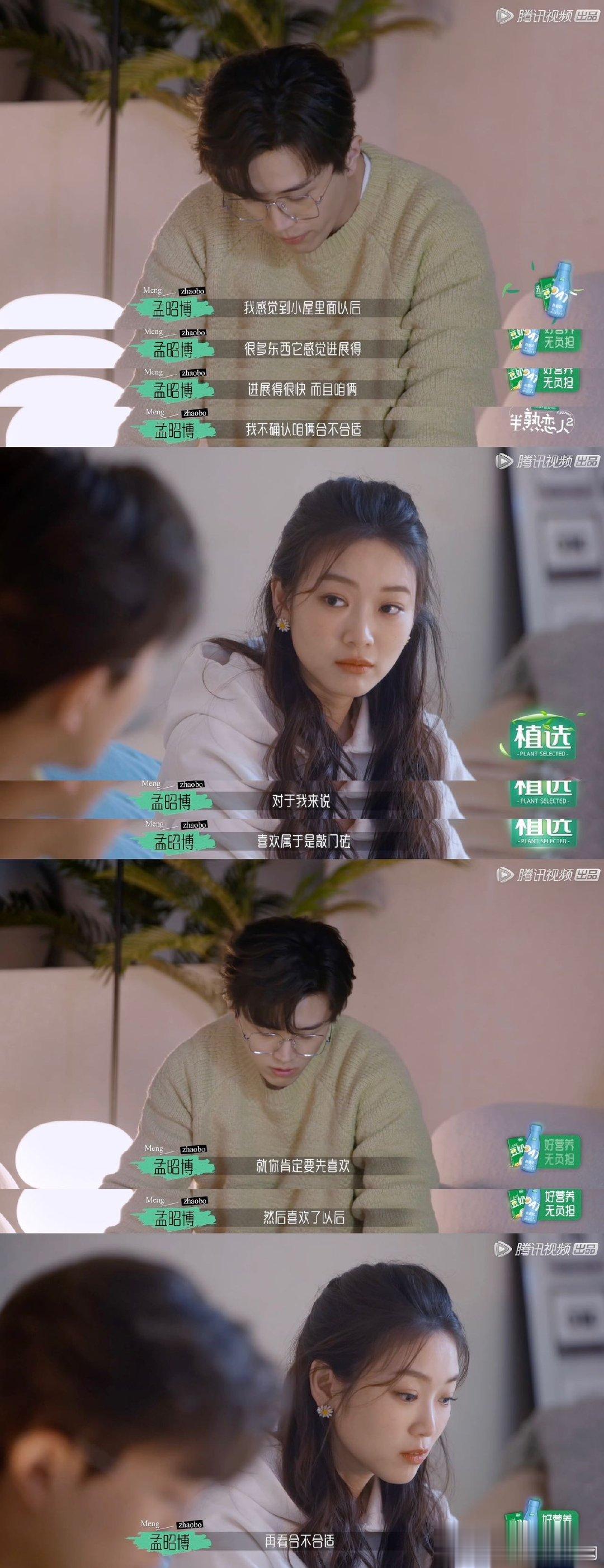 #孟昭博对张宝儿说我们不合适# 其实感觉这一次我们的菠萝包CP好像真是有点虐心了呀,特别是听到 孟昭博对张宝儿说我们不合适~两个人在感情之中的确还是需要有很多的磨合#半熟恋人2场景约会#