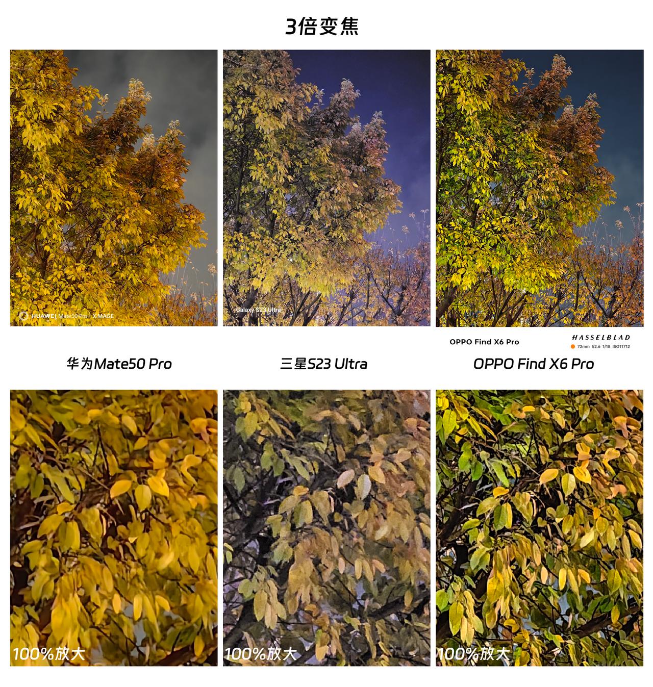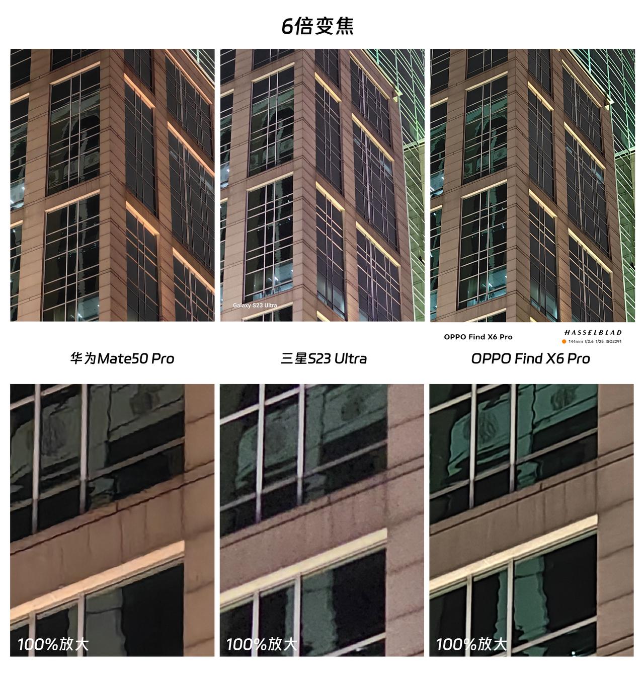 讲真,现在各大厂商的旗舰机在主摄镜头方面的表现都很给力,基本拉不开什么差距了,但长焦镜头差距还是蛮明显的,毕竟不同厂商对于长焦镜头的理解、思考都不尽相同嘛。刚刷微博就看到有网友拿华为Mate50 Pro、三星S23 Ultra以及OPPO Find X6 Pro这三款安卓旗舰,拍了几组夜晚长焦对比样张,大家觉得哪款旗舰拍得更好? 在3倍变焦模式下,我感觉OPPO Find X6 Pro和华为Mate50 Pro的表现比较好,起码画面放大后还是能看得清楚的。而在6倍变焦模式下,基本就是Find X6 Pro的主场秀了,拍出来的照片画质明显更好,看着也更加清晰,不愧是有「暗光长焦」加持的旗舰啊,建议友商赶紧跟上。