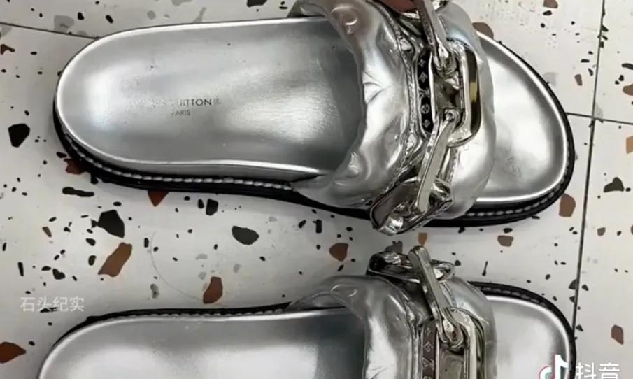 季女士说,前段时间逛街路过LV专柜,左脚右选,看中一款拖鞋,看着logo比较大,