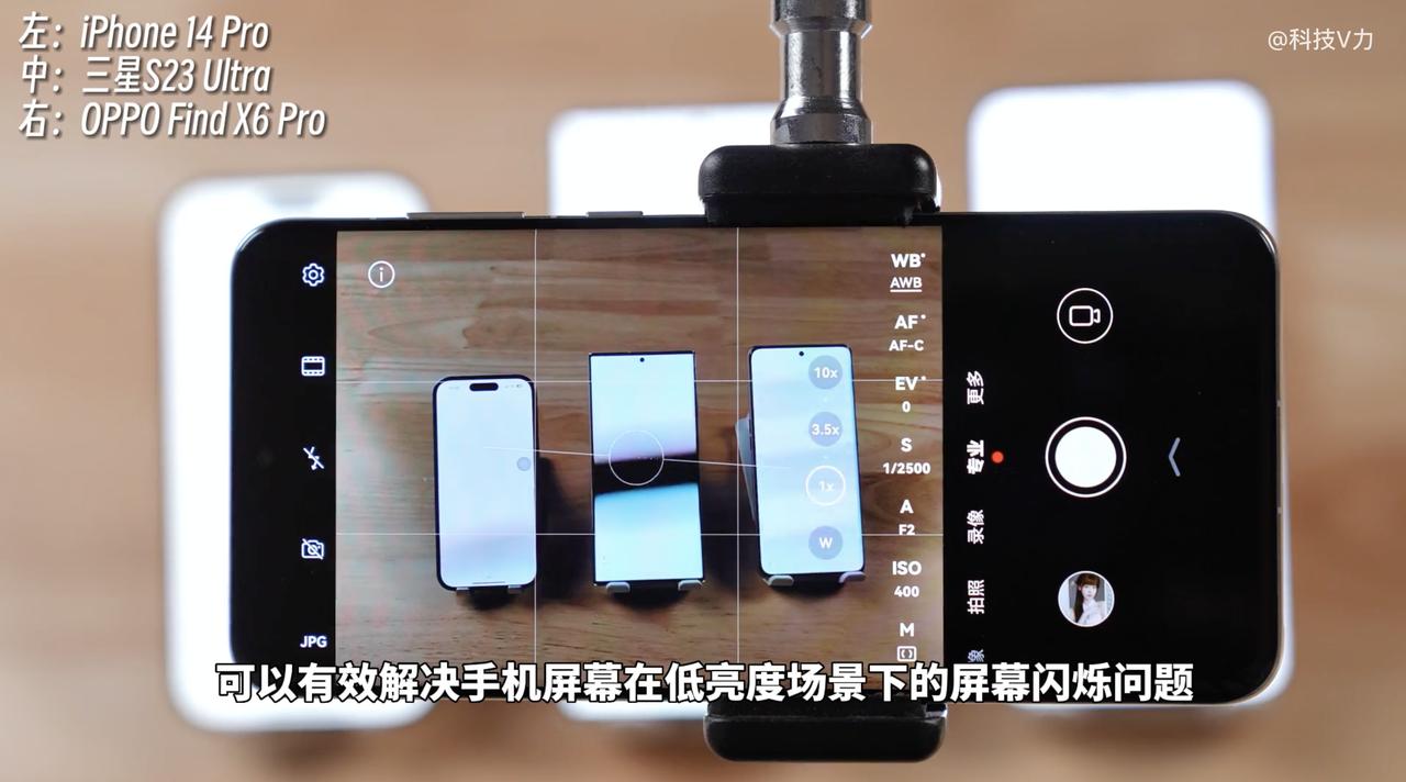 虽然果子在快充方面一直挤牙膏,但在屏幕方面还是挺舍得的,一直用的是好料。就拿将在9月份发布的iPhone 15 Pro系列来说,爆料称会采用三星M12材质的OLED屏幕,全局峰值亮度超过了1500尼特,配合上果子在色彩方面的调校,这块屏幕想必又是妥妥的一流水准。 而就目前而言,哪款旗舰机的屏幕表现更好呢?最近看到有博主进行了一波测试,分别有苹果、三星和OPPO的顶级旗舰,首先是护眼效果方面,支持1440Hz PWM高频调光的Find X6 Pro可以说是完胜,毕竟苹果、三星旗舰并不支持高频调光。 色彩方面的话,三星S23U更鲜艳一些,苹果、OPPO则更真实一些,这倒与好坏无关,主要还是跟厂商的色彩调校有关。而在亮度方面,Find X6 Pro会更具优势一些,毕竟手动最高亮度就可以达到1500尼特,局部激发亮度更是高达2500尼特,在目前来说确实没啥对手~