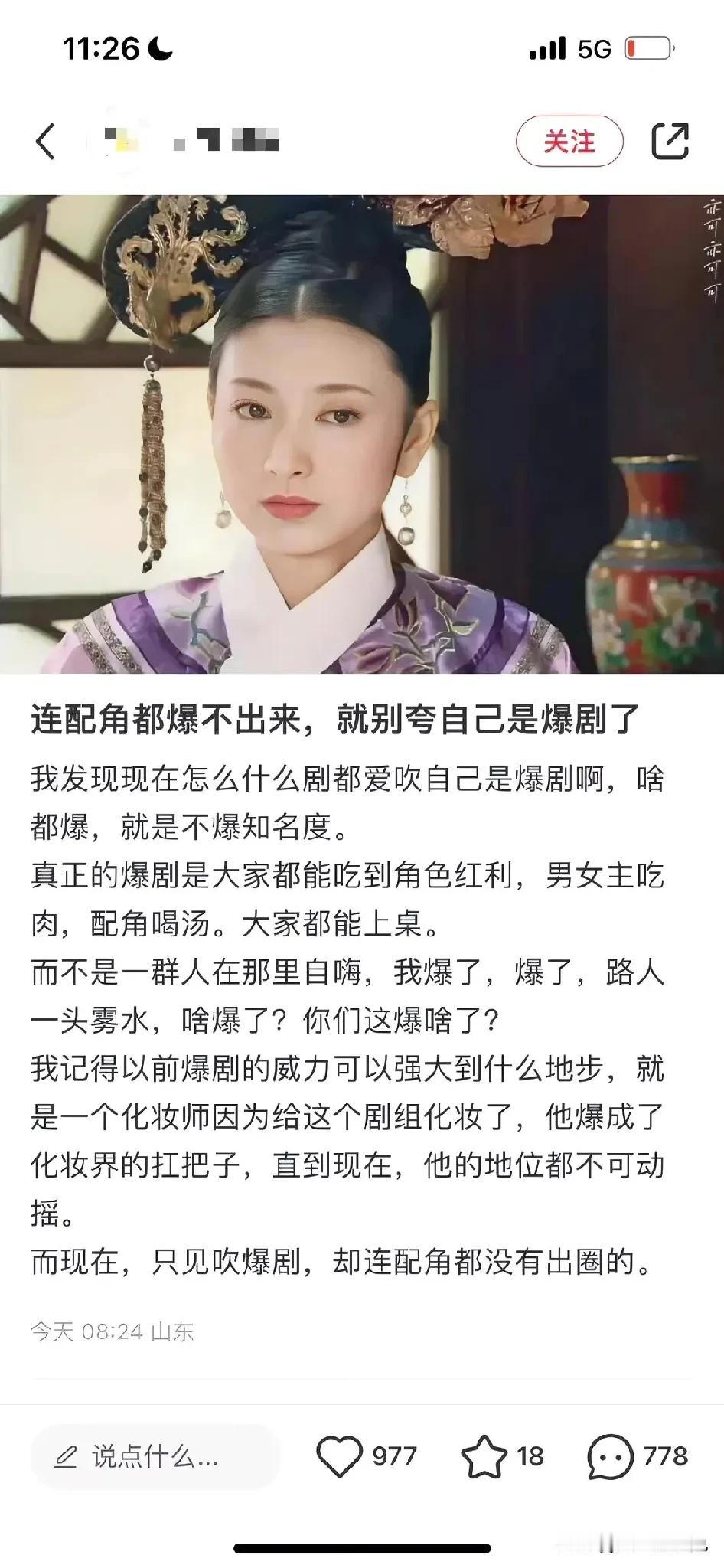 网友总结的太到位了,有些爆剧连主角都没有人认识,就好意思自称爆剧 真正的爆剧应
