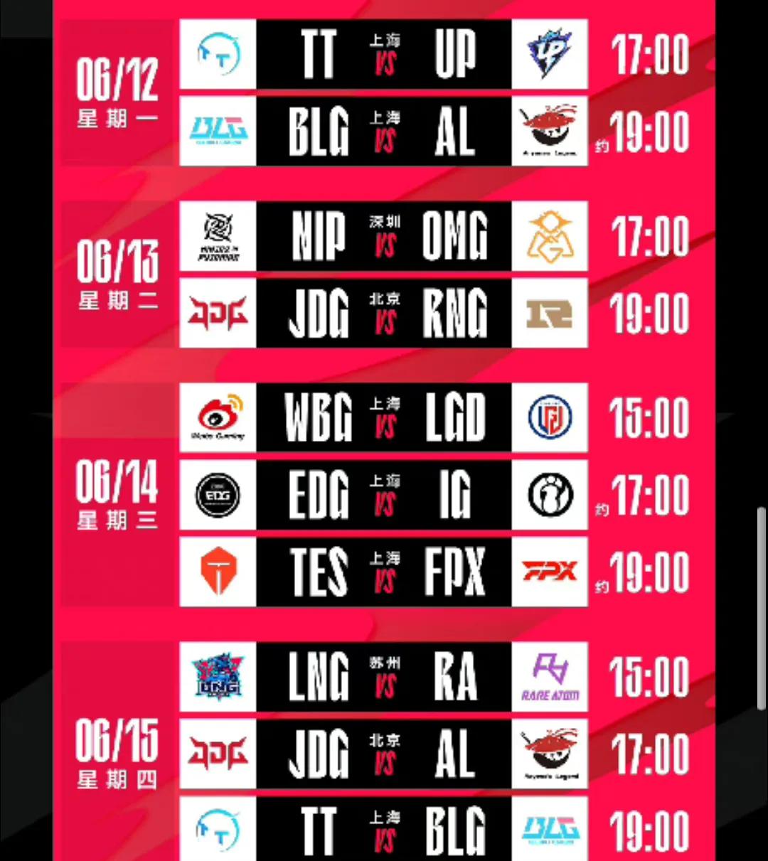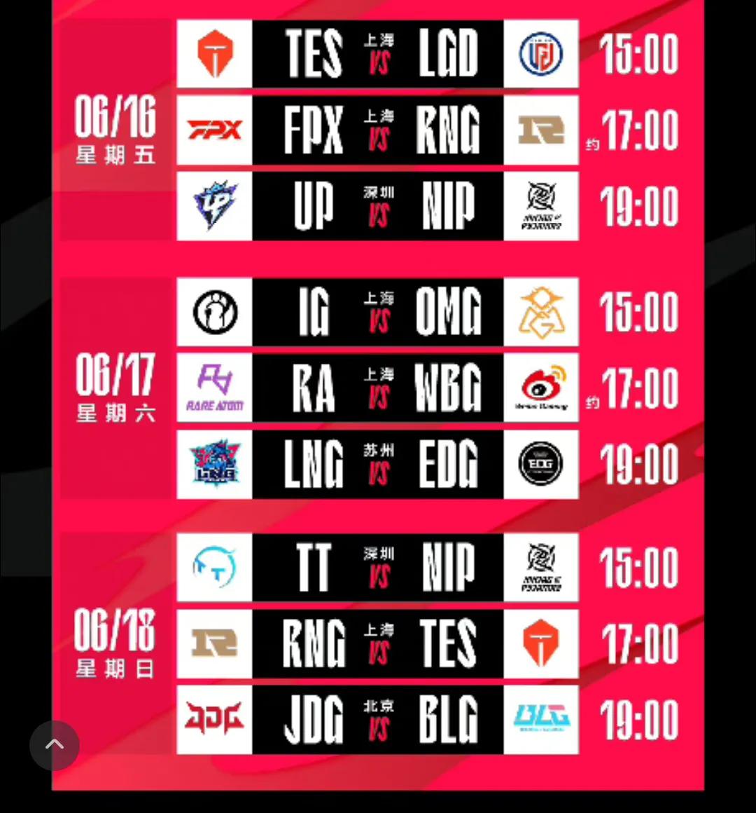 参与方式:点击右下角参与活动发文,即可参与活动 赛前预测的正确率是衡量“LPL资深玩家”的一个重要标准 你是资深玩家吗?你敢挑战吗? 本期小组搞一个每日赛前预测有奖活动 【活动规则】 1、在本活动页面下发“预测文” 2、N+1的LPL赛程比赛比分进行预测,预测文截止预测场次比赛开始前,两场的截止17:00,三场的截止15:00。 3、预测文:A:预测比赛的比分,并附带简单的分析。 B:同一天的比赛预测,写在同一条微头条上。尽量把预测比分写在微头条开头。 C:禁止修改 【活动奖励】 每日3元,16个预测日,共计48元 1、每日在预测正确的组员中,选取一名组员,奖励3元。 2、参与预测的几种情况 A:一名组员预测正确,奖励3元 B:多名组员预测正确,选展现量最高的一位,奖励3元。 C:没人预测正确,奖励累积到下一个比赛日。 例如:第一天没人预测正确,第二天奖励就是6元,第二天也没有人预测正确,第三天奖励就是9元,依此类推。 【开奖时间】 每天LPL比赛结束后1小时内在该页面下公布当天的获奖信息。
