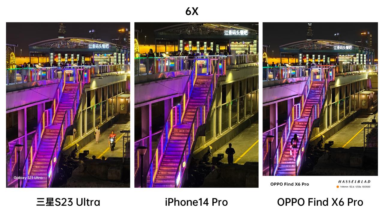 拿下6K+价位段安卓手机销量&销售额双冠军,当日6K+价位段销量仅次于iPhone 14系列,这成绩有点东西啊,直接618开门红了! 不过确实得说,OPPO Find X6 Pro这款国产旗舰各方面都挺能打的,不虚果子、三星的旗舰机。就比如在长焦拍摄方面,由于Find X6 Pro支持暗光长焦,对比iPhone 14 Pro、三星S23 Ultra的话也不虚,比如下面这几张6X焦段夜景实拍图中,Find X6 Pro的画面比较纯净,而且对于高光的压制也到位,整体画面看起来不错。你们觉得谁的表现好点? 而且在屏幕方面,OPPO Find X6 Pro这次在亮度方面也做到了极致,超过了果子、三星旗舰,局部峰值亮度达到了2500尼特,就算是在户外大太阳的场景也Hold得住,看清楚屏幕。 再者说,OPPO Find X6 Pro在充电方面的优势也很明显,是目前为数不多用上了100W有线+50W无线的闪充组合,回血速度更快,这方面就不对比果子、三星了,毕竟赢太多了。所以总的来说,Find X6 Pro能成为目前6K+最畅销的安卓手机,我觉得并不意外。