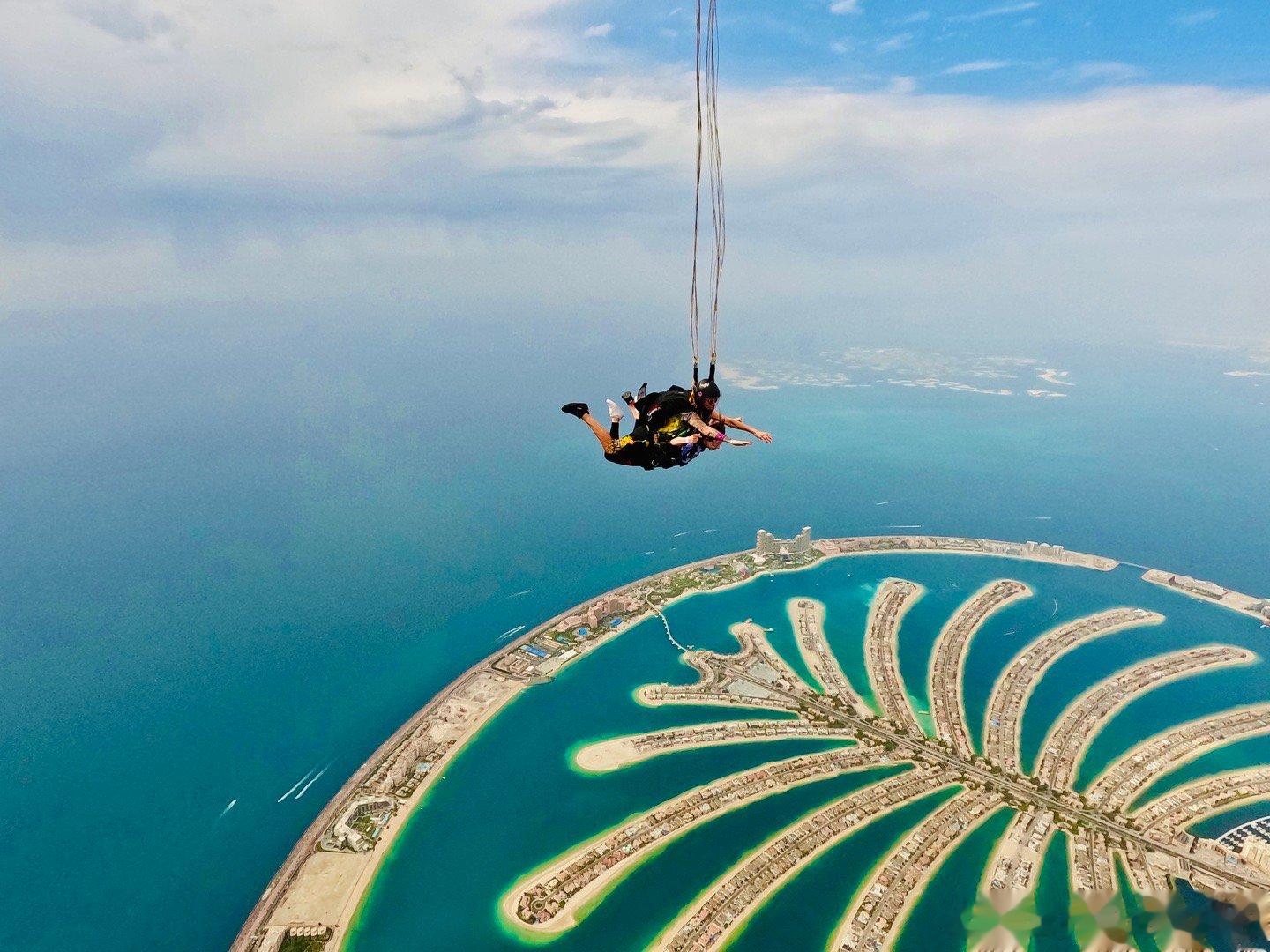 有着全世界最美的跳伞景,能看到棕榈岛、帆船酒店、哈利法塔和海岸线上的高楼大厦,搭配起来景致绝美!