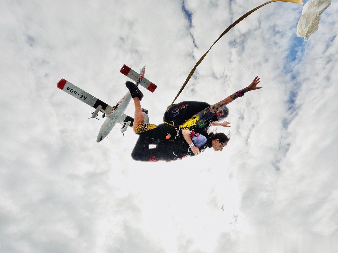 跳伞的时候不敢睁眼[doge] 脸还被吹歪了[裂开]