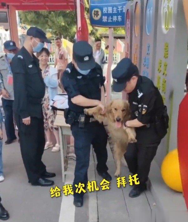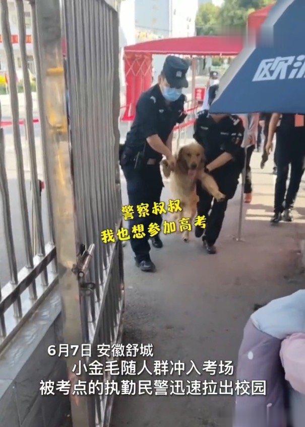 #金毛误入考场被民警请出#太萌啦!!!一起考一波吧🎉是考生家的宝贝金毛吧[