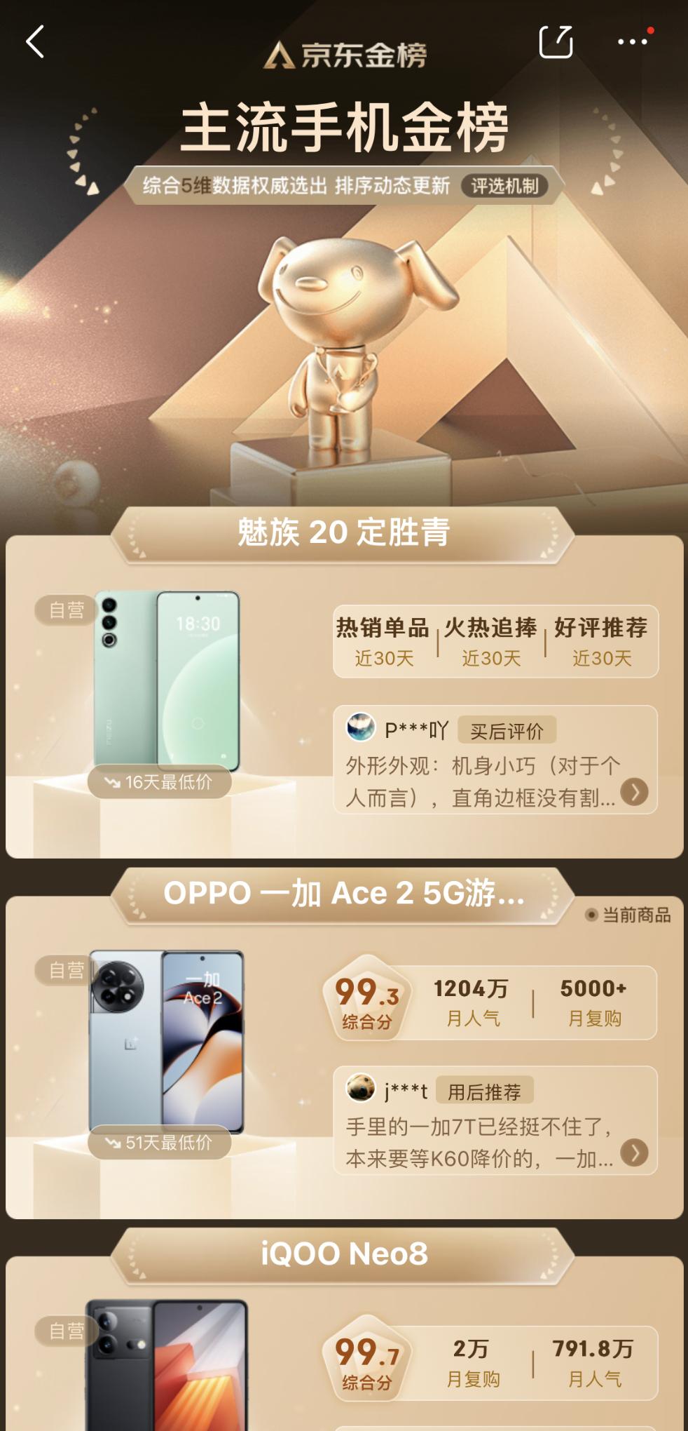 魅族这是要支棱起来了?618活动中魅族20卖得不错啊!有没有已经入手了的[奸笑] 看了一下京东的榜单,在2-3K价位中,一加Ace 2、红米K60依旧是很多人的选择。不过就目前而言,还是一加Ace 2更胜一筹,毕竟无论是质感还是配置,都要比K60好很多[吃瓜群众] 目前一加Ace 2到手价来到了2599元起,这个价格能买到骁龙8+处理器、1.5K屏幕、IMX890主摄以及100W闪充的手机,大家说还要啥自行车呢?