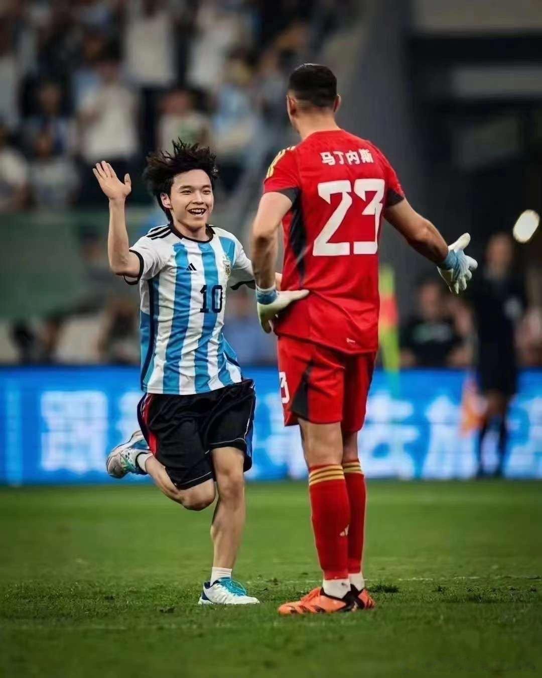 #球迷冲进球场抱梅西#勇敢理智清醒的少年真棒👍体育没白练!下次换个方式拥抱梅