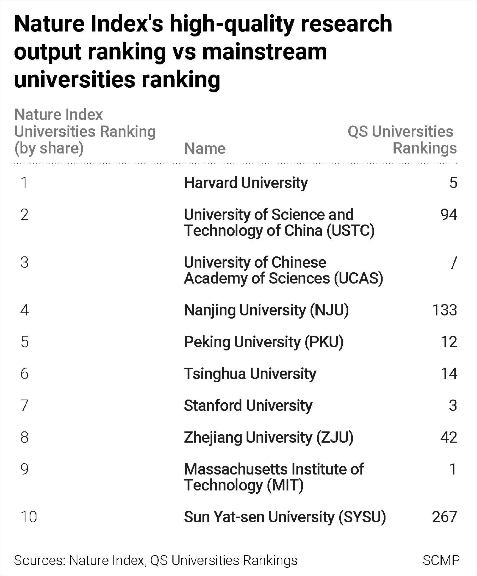 香港《南华早报》则注意到,如果看自然指数最新追踪数据,也即去年2月至今年1月的贡献份额,一些在中国以外鲜为人知的大学在高质量的科研方面正在迅速超越西方的知名大学,包括牛津大学、剑桥大学、普林斯顿大学和加州理工学院。这一排名也与流传更广的QS世界大学排名形成对比。