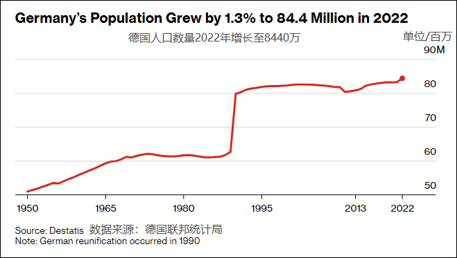 根据德国联邦统计局20日发布的数据,2022年德国死亡人数高于出生人数约32.7万人,但去年德国人口数量增长112万人,完全是移民造成的。去年,德国净移民人数从2021年的32.9万人暴增至超过145万人。