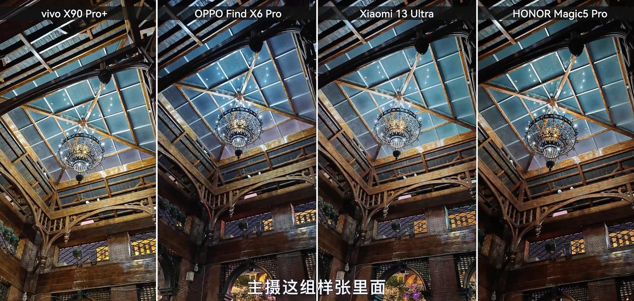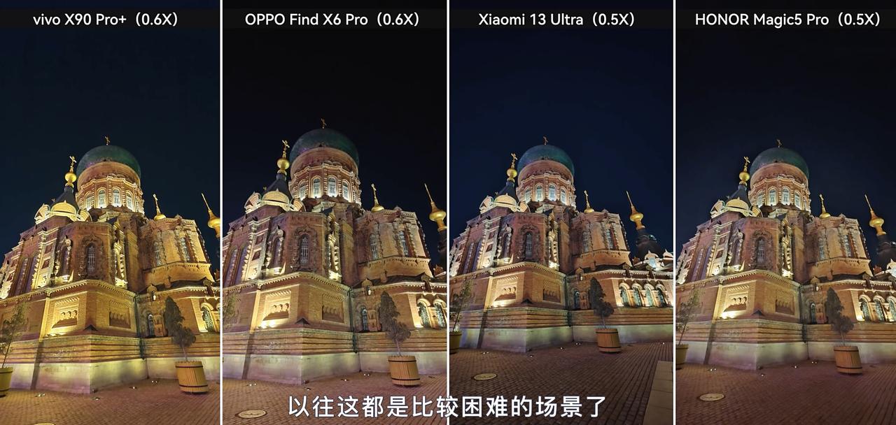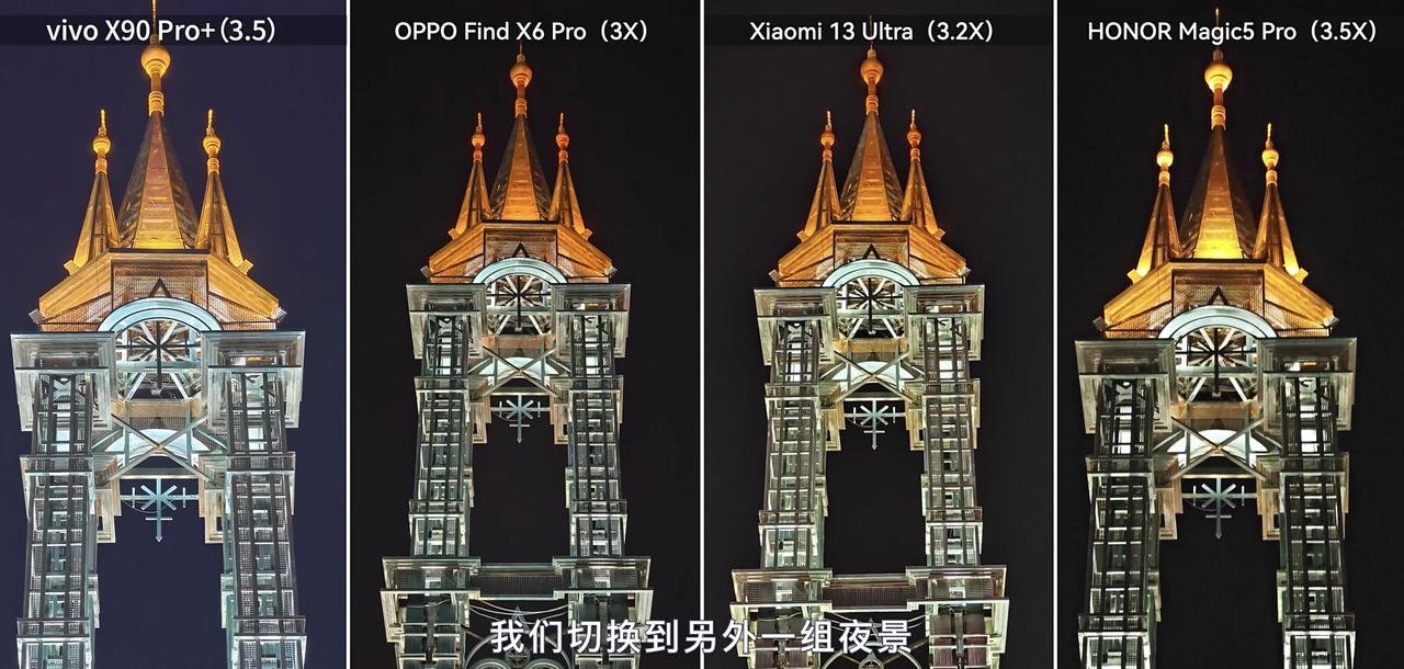 果然底大就是好!刚看了科技美学的最新一期视频,四大影像旗舰在线PK,看完视频后我感觉OPPO Find X6 Pro的整体表现要好一些,毕竟超广角、潜望长焦镜头的传感器底更大,相对来说更有优势一些。 首先是广角镜头下(图3-图4),四款旗舰机的表现相差不大,毕竟用的传感器都是旗舰级别的,只是算法调校稍有不同,导致观感有所差异罢了。到了超广角(图5),Find X6 Pro的天空纯净度最佳,还原度比较高,而其他三款旗舰多少有点算法植入的痕迹。 到了长焦镜头,Find X6 Pro再一次夺得胜利(图6-7),毕竟传感器尺寸大,而且还支持暗光长焦。通过图片能看到,Find X6 Pro拍出来的样张细节足够丰富,而且没有强行提高亮度,保留了夜景独有的魅力。那么,大家喜欢哪款旗舰的影像风格呢?