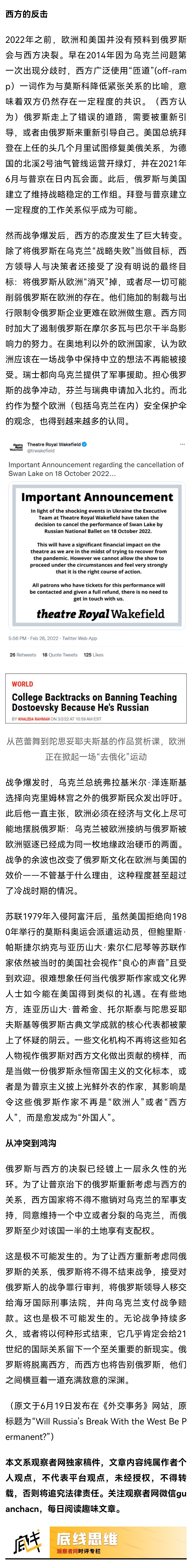 【#俄罗斯会与西方永久决裂吗#?】金玛吉、里普曼:无论俄乌冲突持续多久,或者将以何种形式结束,它几乎肯定会给21世纪的国际关系留下一个至关重要的新现实。俄罗斯将脱离西方,而西方也将告别俄罗斯,他们之间横亘着一道充满敌意的深渊。
