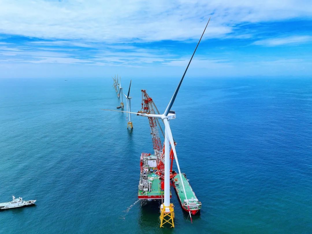 【震撼!#52层楼高的海上大风车成功吊装#】6月28日14时30分,位于福建省北部海域,由三峡集团与金风科技联合研发的首台16兆瓦海上风电机组成功吊装。16兆瓦海上风电机组的叶轮直径252米,叶轮扫风面积约5万平方米,轮毂高度达152米,是全球范围内单机容量最大、叶轮直径最大、单位兆瓦重量最轻的风电机组,标志着我国海上风电大容量机组在高端装备制造能力上实现重要突破,达到国际领先水平。