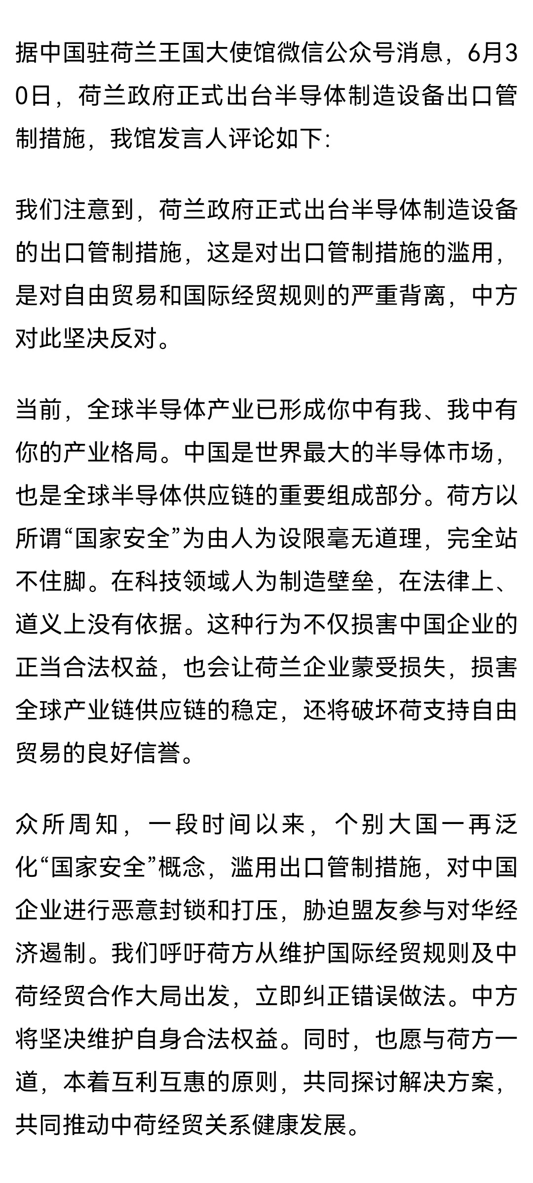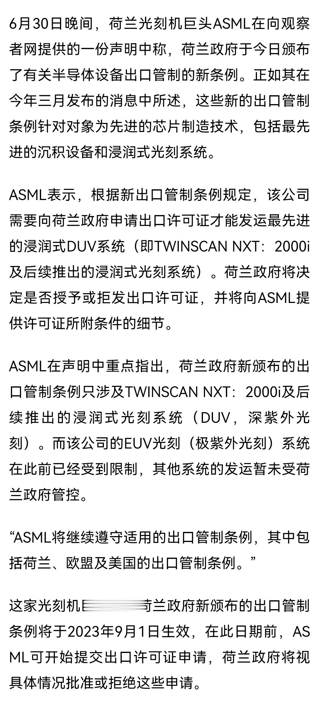 荷兰宣布实施半导体出口管制,9月1日起正式生效
