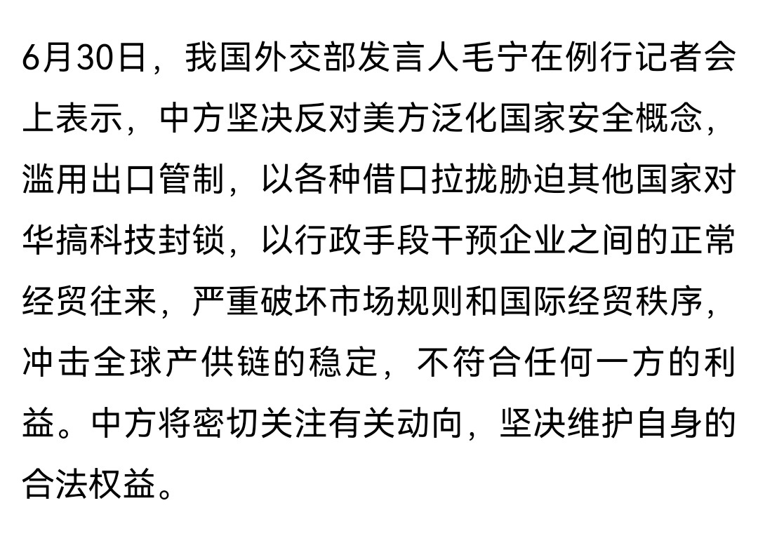 我外交部:中方将密切关注有关动向,坚决维护自身的合法权益