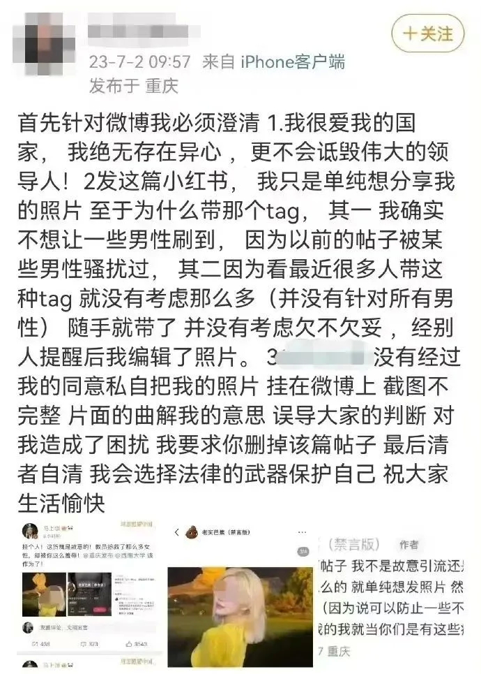 【#西南大学回应女子发照片配侮辱话题#】近日,一女子在社交平台发布其在橘子洲自拍照,在有橘子洲头著名雕像画面的文案中打上多个侮辱男性的标签。此事件引发广泛关注,不少平台用户纷纷举报。