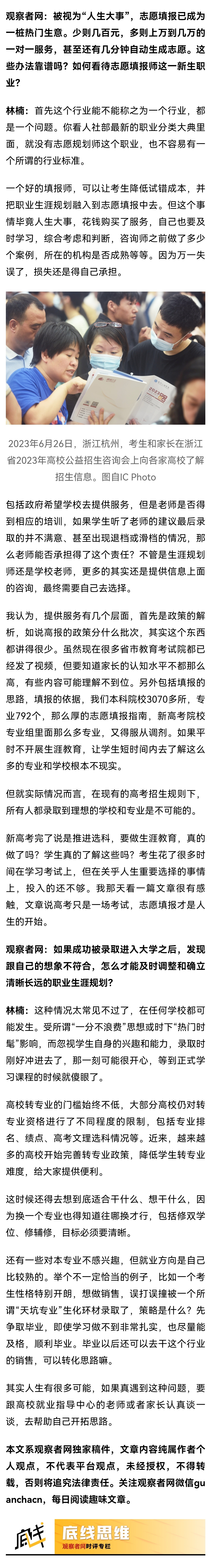 【今年几乎没碰到要报新闻学的孩子,真的有“天坑”专业?】林楠:志愿填报的结果要到4年大学毕业甚至硕士毕业后才会真正的显现出来。我们站在此刻,回想6-7年前,可以想到互联网、房地产、教培行业如今的情况么?很多家庭做决策没有主轴,“既要又要还要”,大多数人的分数并不支持满足全部需求。