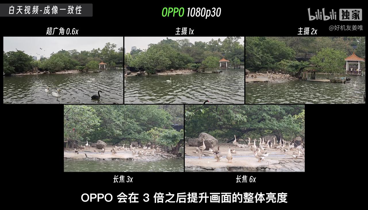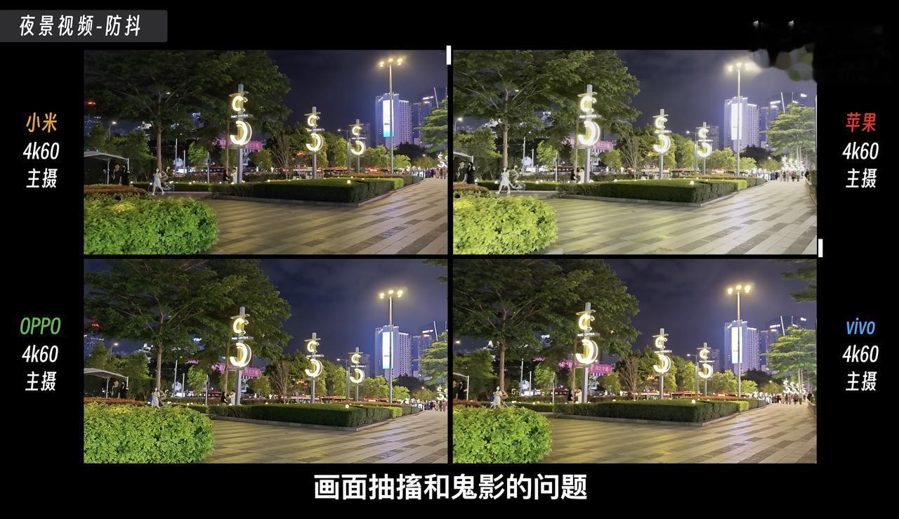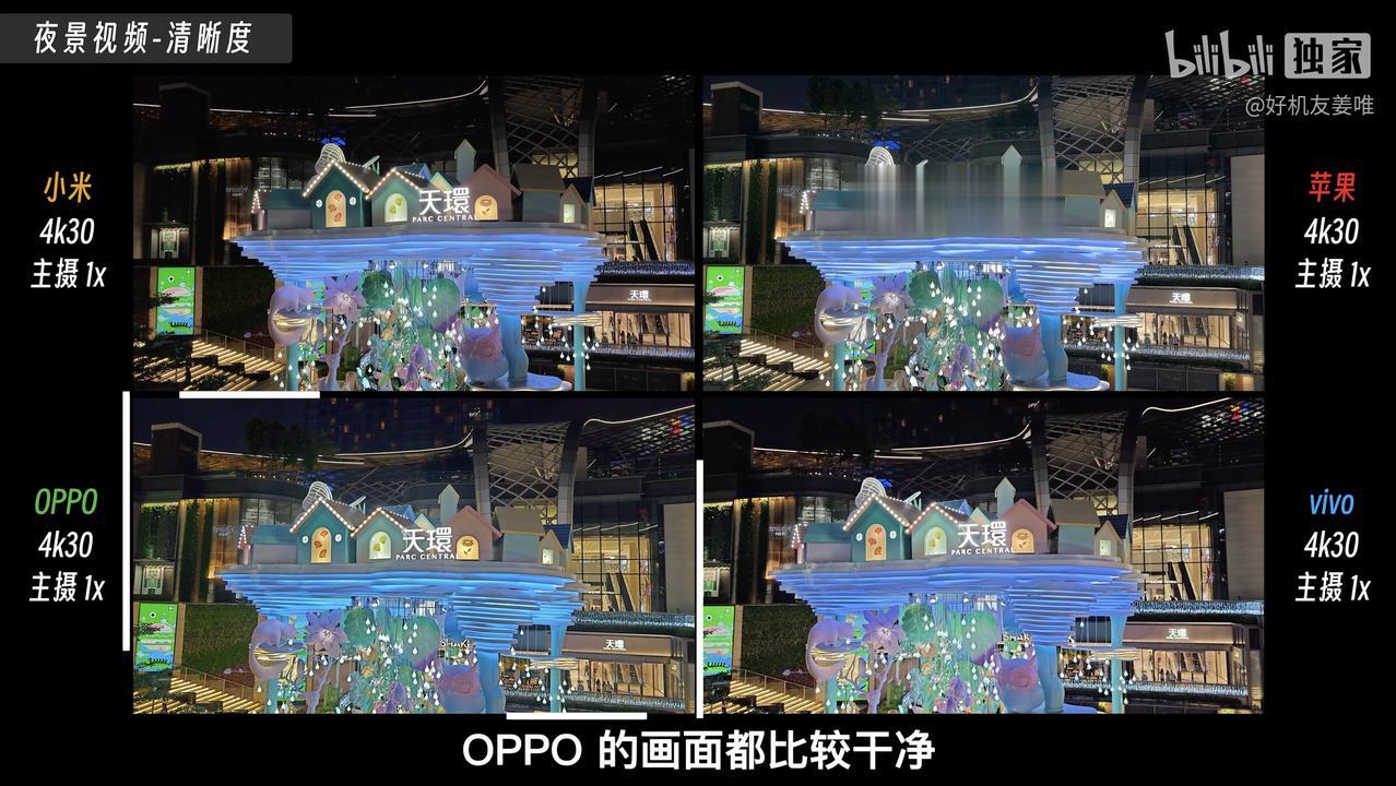都说iPhone拍视频的效果很好,那么对比1英寸大底主摄的三款国产旗舰来说,还有没有胜算呢?最近看到有博主(好机友姜唯)用iPhone 14 Pro和三款国产旗舰进行了拍视频对比。 首先在成像一致性方面,iPhone 14 Pro确实要比另外三款国产旗舰更具优势,无论是使用哪颗镜头或焦段进行拍摄,画面的饱和度、色彩准确性都非常一致,确实很加分。而国产旗舰这边表现比较好的是OPPO Find X6 Pro,在0.6X、1X和2X焦段中的画面一致性表现也不错,而到了3X焦段以上的话,画面亮度则会提高一些,估计是OPPO的影像策略不太一样。 而到了晚上的话,iPhone 14 Pro就出现了比较明显的“鬼影”问题,拍摄视频时需要找好角度,不然观感比较差。而相对来说,这三款国产旗舰对“鬼影”的抑制效果更好,基本看不出来,而且得益于1英寸大底,画面整体的清晰度要高一些。那么,大家觉得哪款旗舰机拍视频的效果比较好呢?