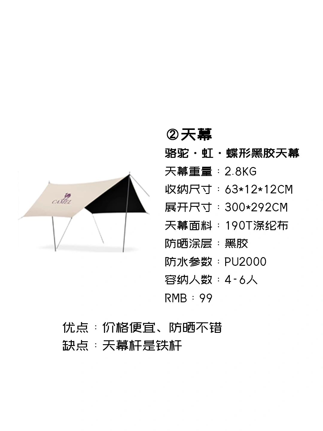 2,天幕骆驼黑胶天幕选的小号的,黑胶遮阳防晒效果好