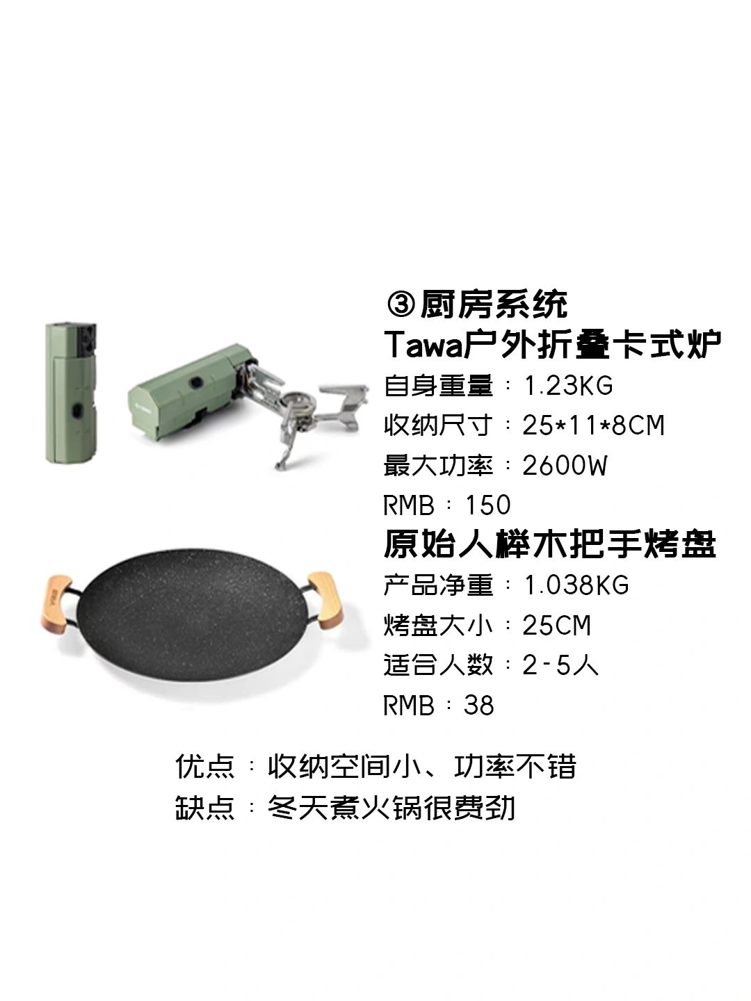 3,厨房系统①tawa折叠卡式炉、②原始人烤盘折叠的卡式炉方便携带、也好收纳