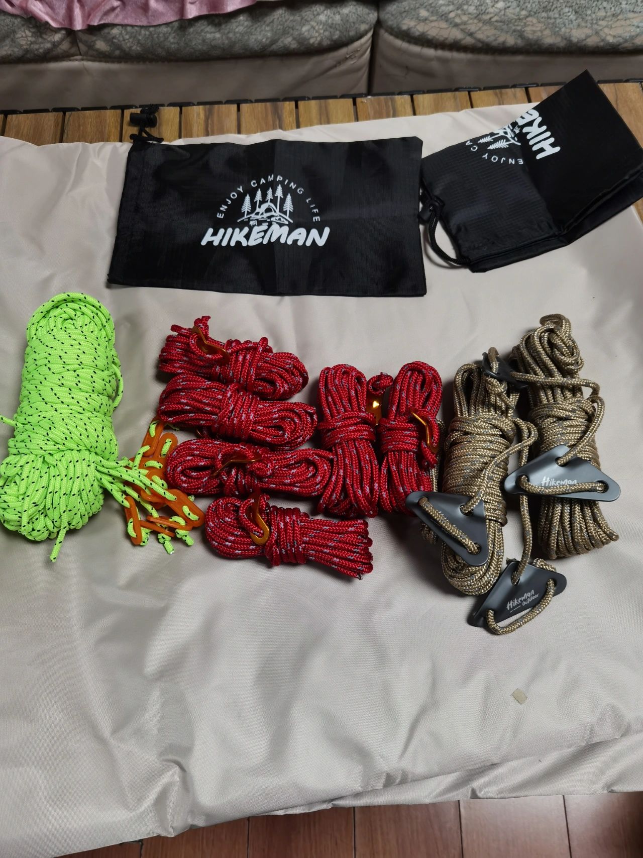 刚选购的时候花多眼乱,不同的形状、不同的大小、不同的颜色、不同的面料,不知如何下手,普遍新手都会优先考虑整套购买,我也不例外,我当时选择了牧高迪小号六边型展开尺寸4.4m*4.4m,米白+橄榄绿颜值不错。但是……,在我使用的时候,我才发现到这款天幕的缺点:1、杆子太矮,只有2.1米,人走进去有点压抑2、六边型,遮阳面积实际并不大3、只配了6根风绳,所以每根主杆只有一根,自己一个人撑起来太困难4、两条边中间没有孔,少了两个可打风绳或撑杆的点,遇大风不太稳所以我决定退掉重买一套,但问题来了,因为地钉和杆子一但使用过,就必定会有磨损,影响二次销售,是不能退的。我开始思考我的第二套天幕,这一次我不再一整套地买,杆子、风绳、地钉我只要买质量好点的就肯定能适用,幕布单买使用如果不合适也不会有磨损还可以退货。杆子:直径至少达28MM,壁要厚,铝合金、分段拼装可调节高度风绳:5mm粗,卡扣是铝合金,带颜色容易辨识。主杆风绳直接一根长8~10米的带两个扣一根当两根用地钉:钢钉,要尽可能粗。草地(20CM),松土泥地(30CM),沙地(40CM),按使用场景选择对我来说,按上面的标准就肯定适用,不用折腾买回来后因不适用又退货。幕布这一次我只考虑碟形、8角型、矩形,从颜值来看,碟形和8角型撑起来是非常好看的,如果你注重颜值可以考虑,但好看不中用,遮阳率非常低。